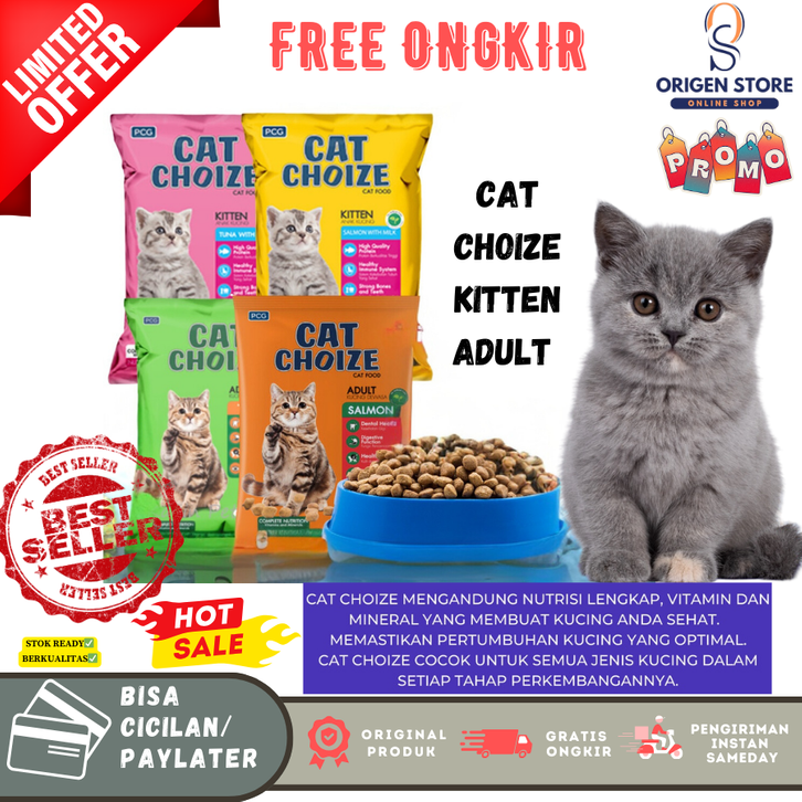 GRATIS ONGKIR-5 Pack Makanan Kucing Cat Choize Adult & Kitten all varian 1kg & 800gr