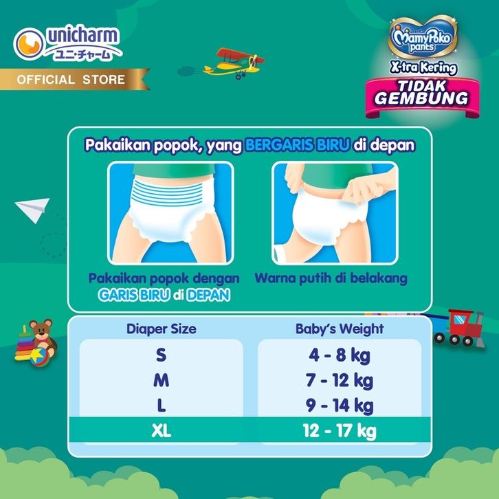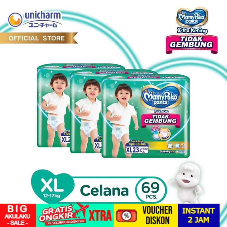 TANPA DP MamyPoko Pants X-tra Kering Slim Tidak Gembung - XL 23 - Popok Celana - 3 Packs TERLARIS
