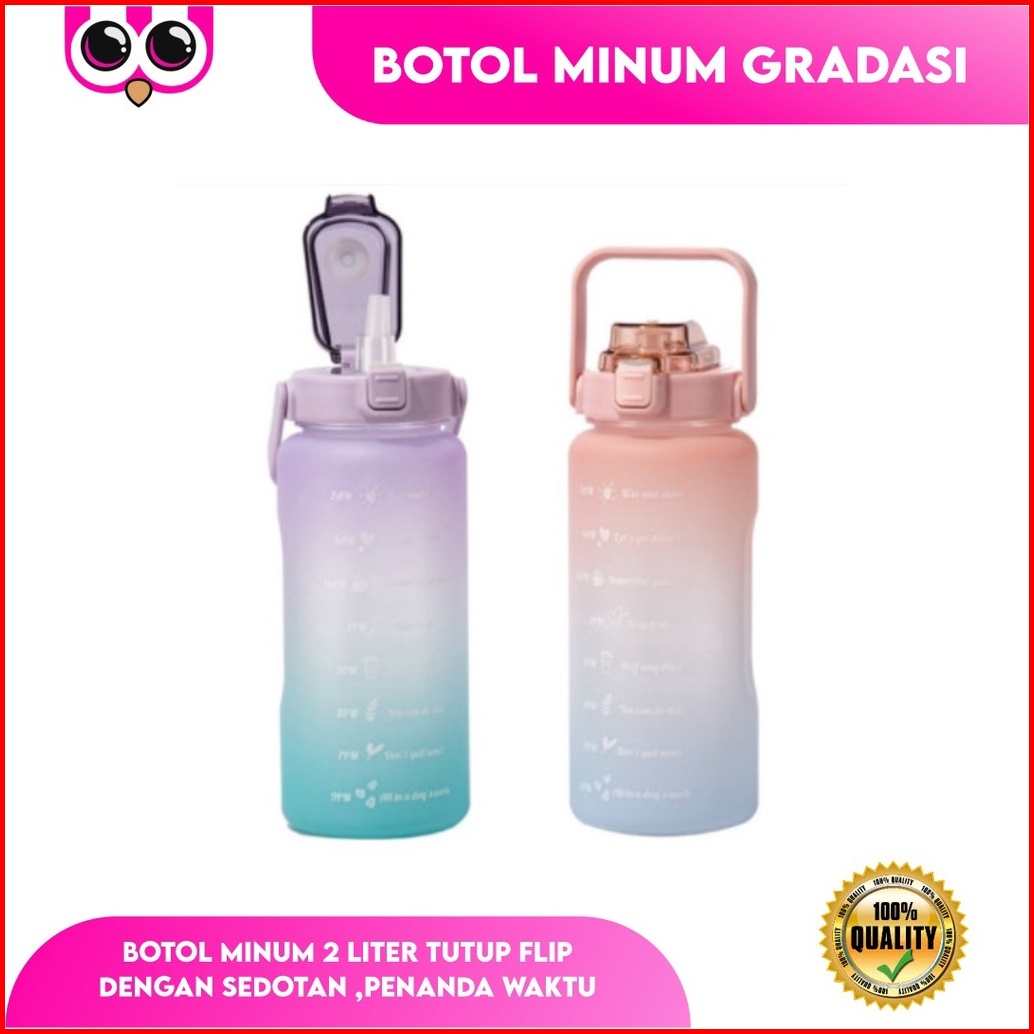 Botol Minum Gradasi 2 Liter Penanda Waktu Premium High Quality