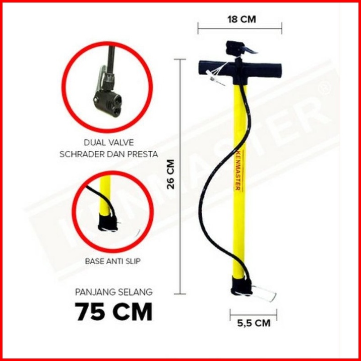 Tanpa Meter Kenmaster Pompa Ban Sepeda Motor Mobil Tabung Stainless Pompa Ban Tabung Meter Sepeda Motor Mobil Bola Manua