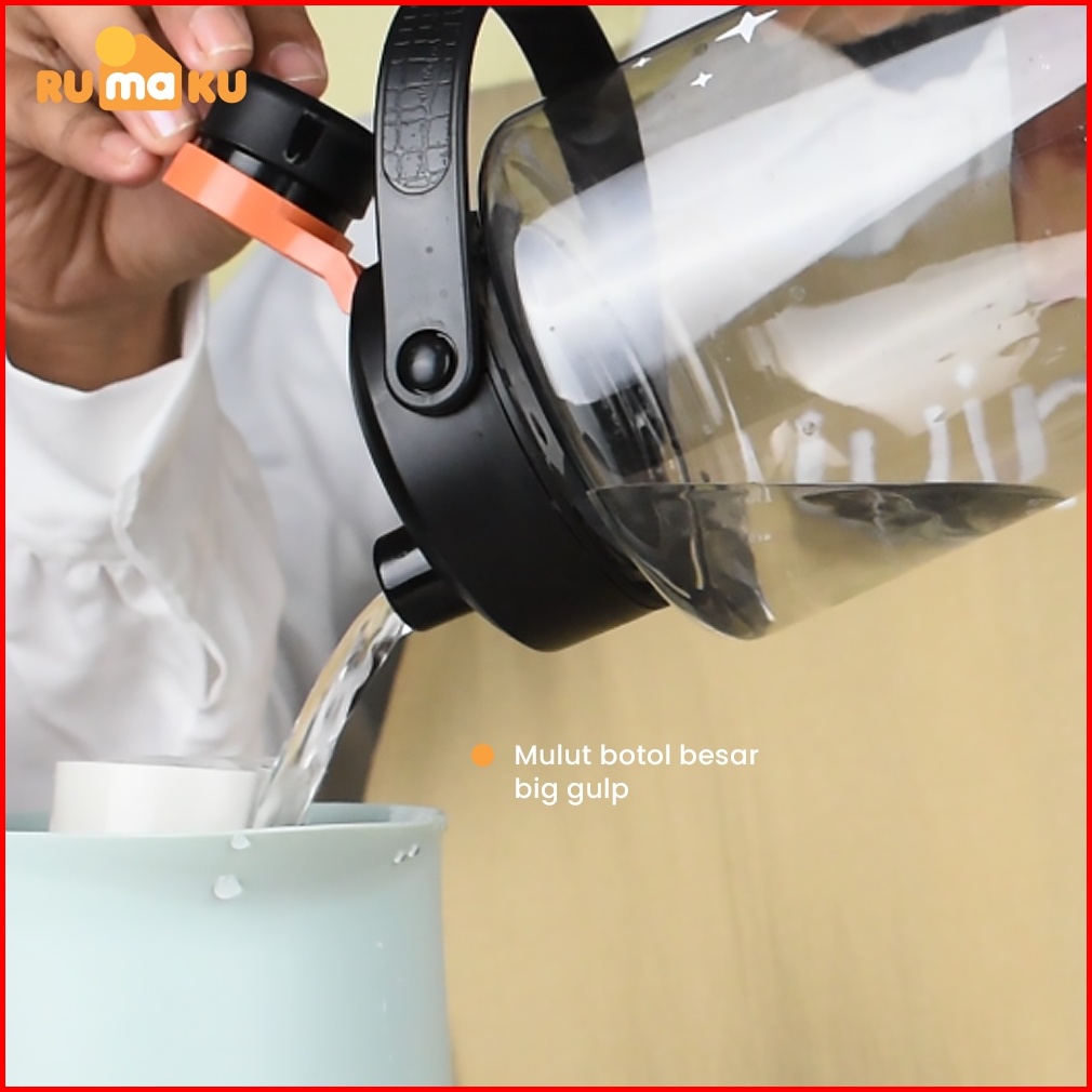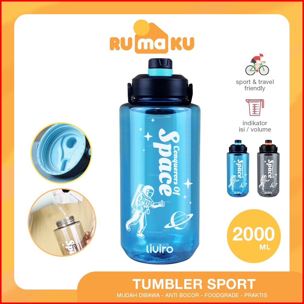 Rumaku Botol Minum Space Cup Besar 2 Liter Double Silicone Seal Anti Bocor Dengan Handle Praktis