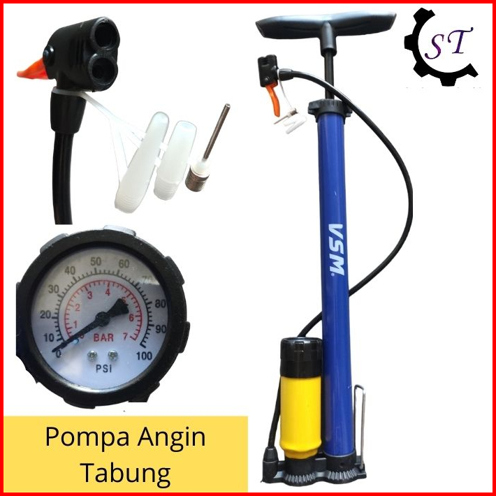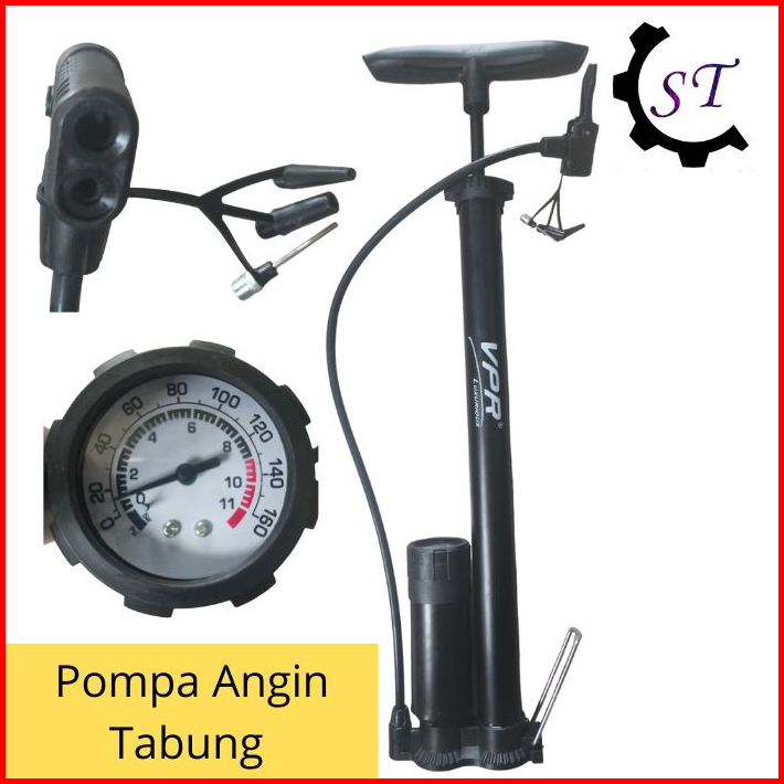 Pompa Angin Sepeda Motor Mobil Bola Manual Tabung Meter Vsm Vpr Cab Hitam