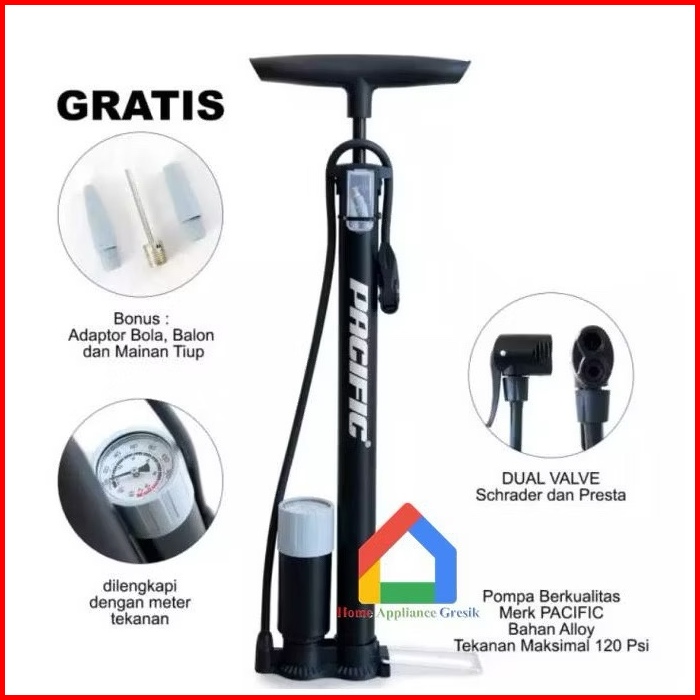 Pompa Ban Tabung Meter Sepeda Motor Mobil Bola Kompa Angin Tangan Merk Pacific