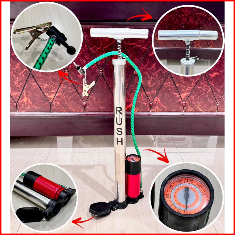 Rush Nikel Stainless Steel Pompa Tabung Angin Udara Model Tabung Body Stainless Asli Dan Ada Meteran Pompa Ban Motor Mob
