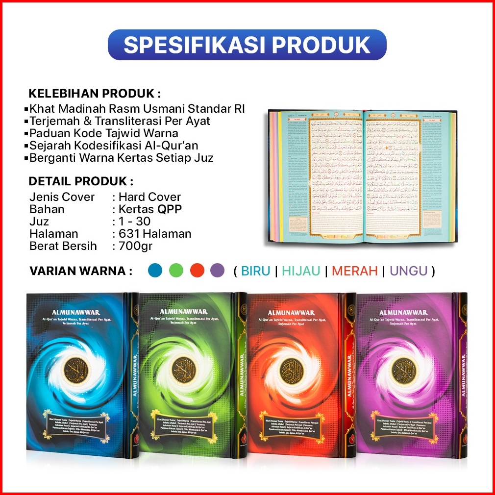 Alquran Kecil Al Munawwar Ukuran A5 Al Quran Terjemah Tajwid Per Ayat Quran Warna Dan Transliterasi Cbs Cipta Bagus Sega