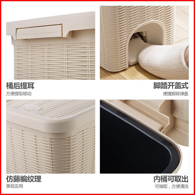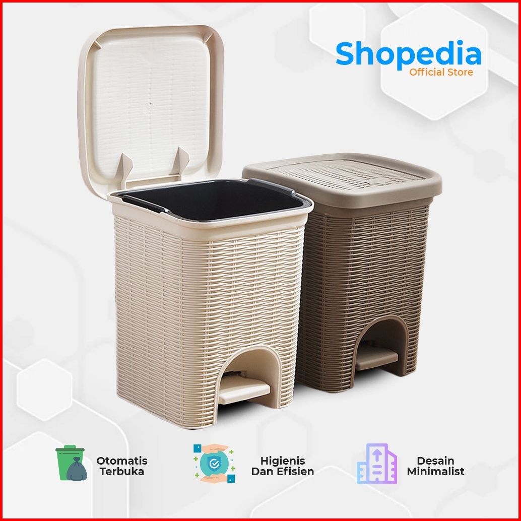 Tempat Sampah Injak Buka Otomatis Motif Rotan Anyam Estetik