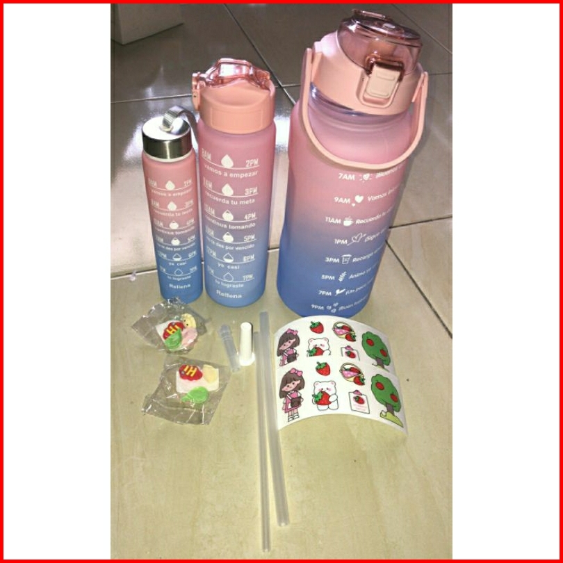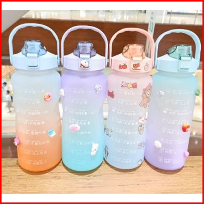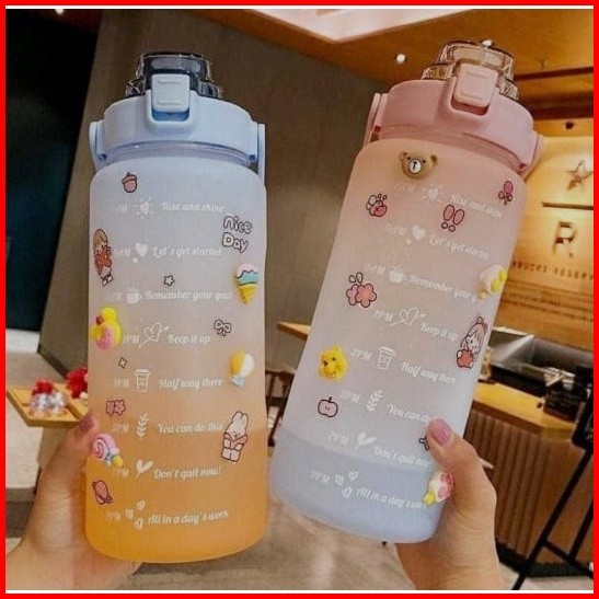 Botol Minum 2 Liter 2000ml Korea Viral Botol Motivasi Viral Rainbow Free Sticker 2d 3d Botol 1500ml 1.5l Viral