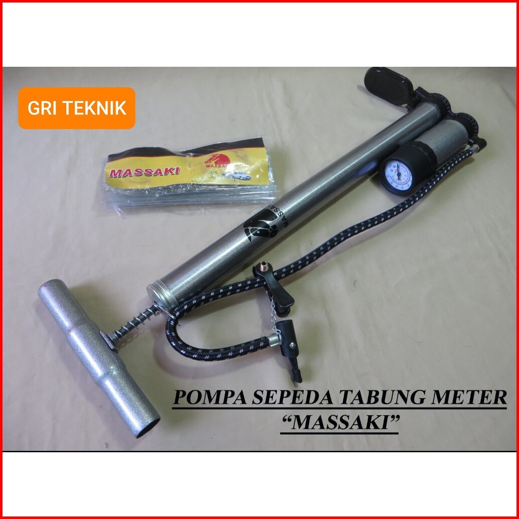 Promo Pompa Sepeda Tabung Besi Massaki Pompa Ban Pompa Tangan Massaki Dgn Meteran Tekanan
