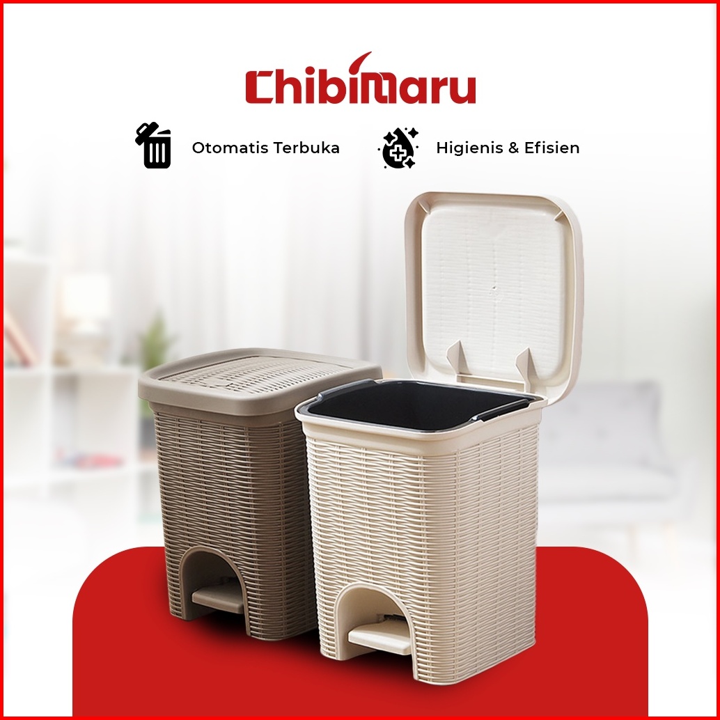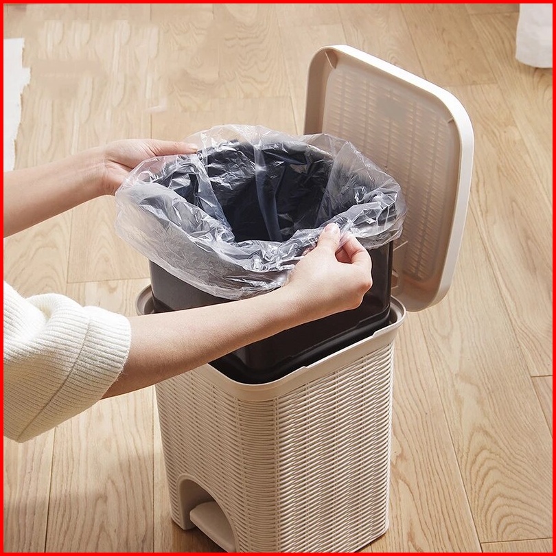 Tempat Sampah Injak Buka Otomatis Motif Rotan Anyam Estetik