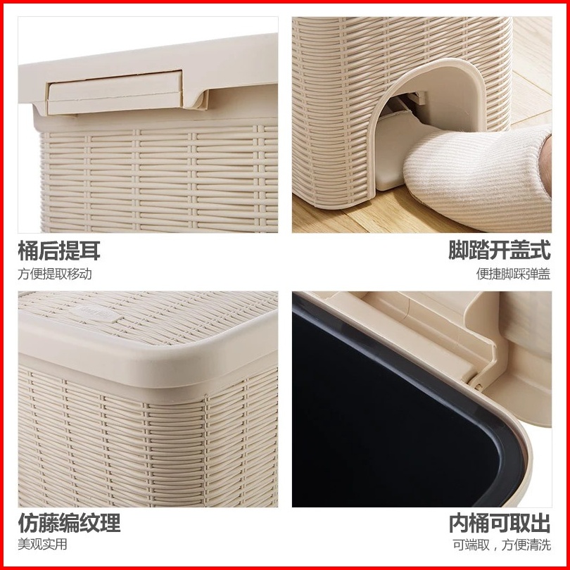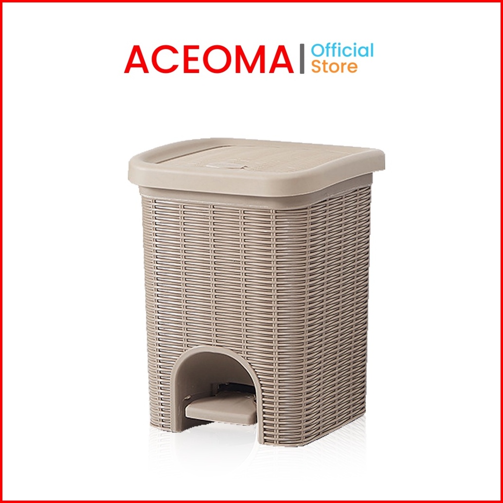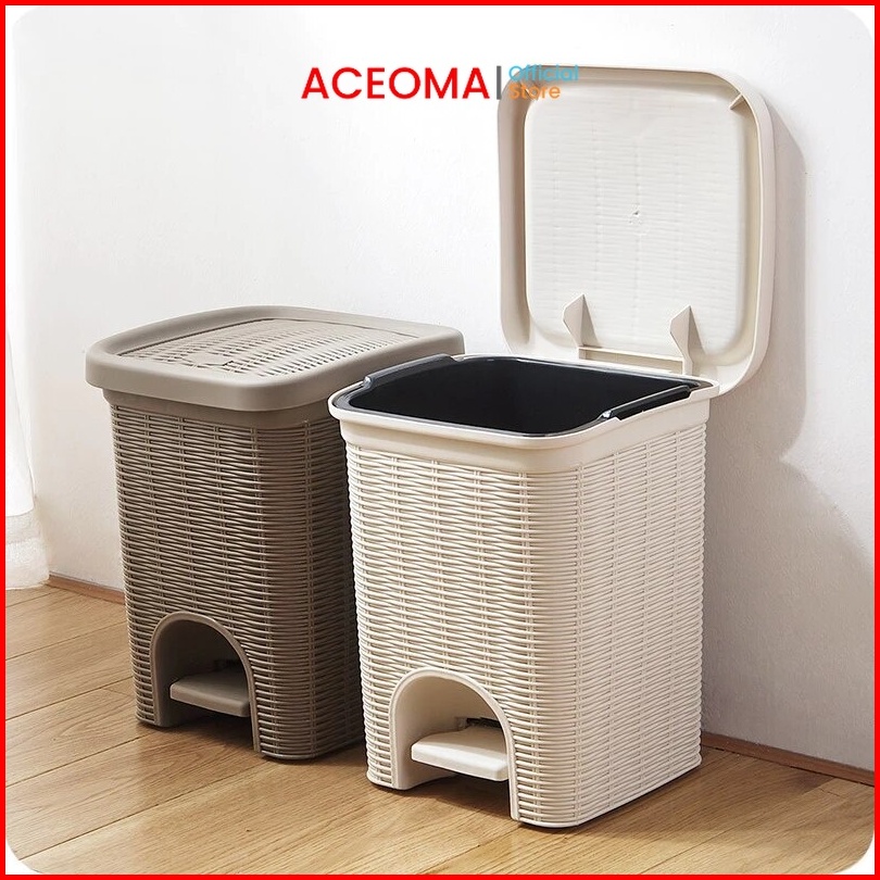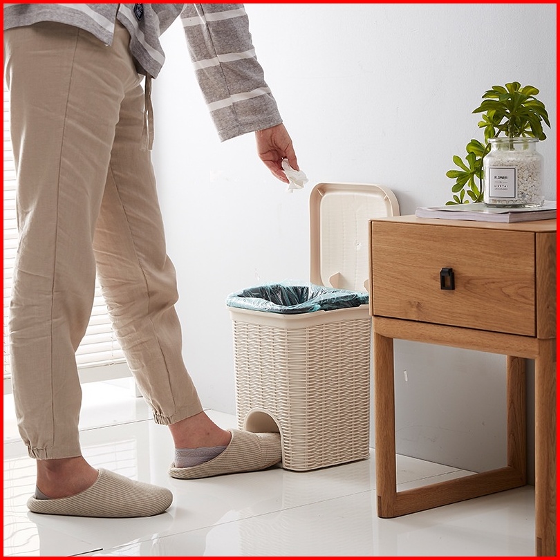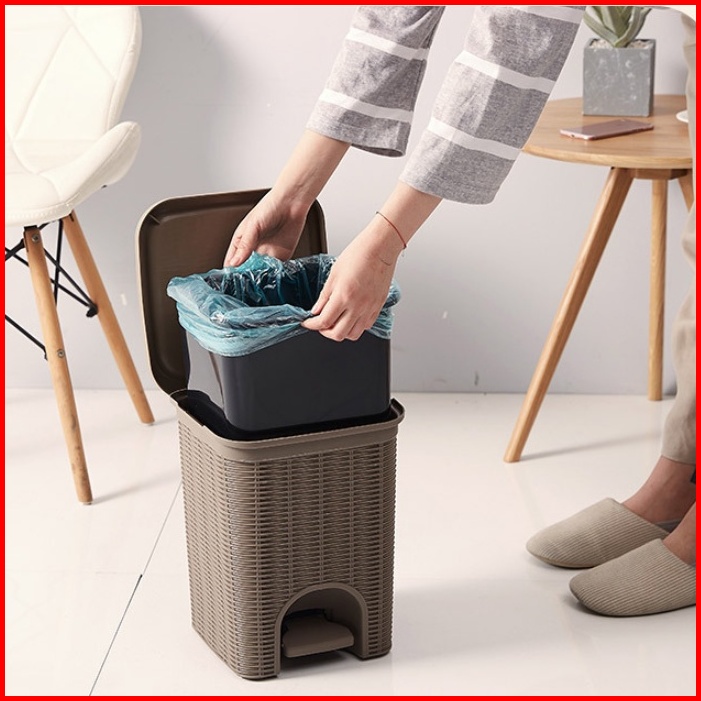 Tempat Sampah Injak 10 Liter Motif Anyam Rotan Tong Sampah Injak Tutup Otomatis