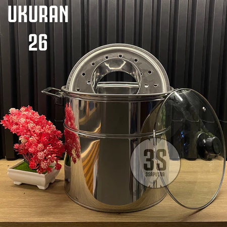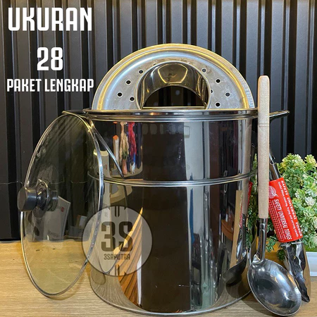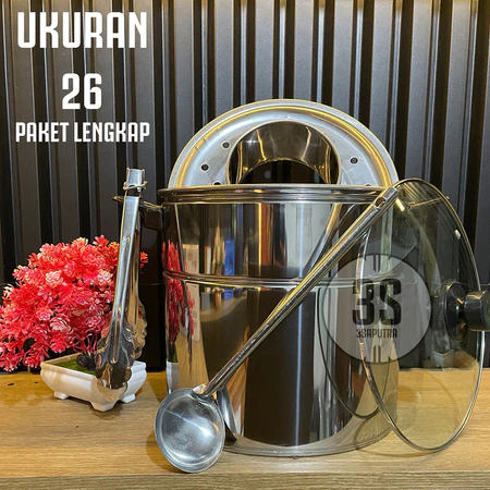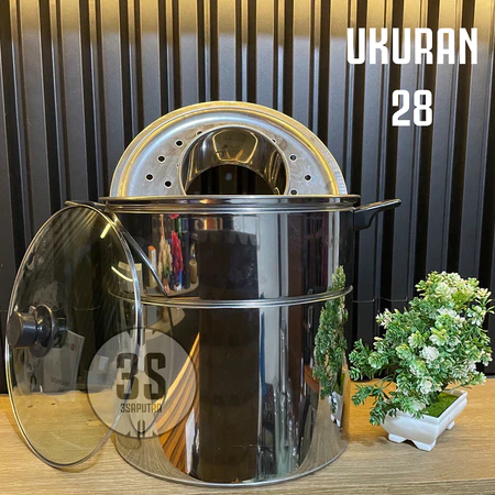 Dandang Bakso 22 / 24 / 26 / 28 / 30 Cm Panci Stainless Steel Tutup Kaca Panci Basoo Jumbo Dandang Baso Serbaguna