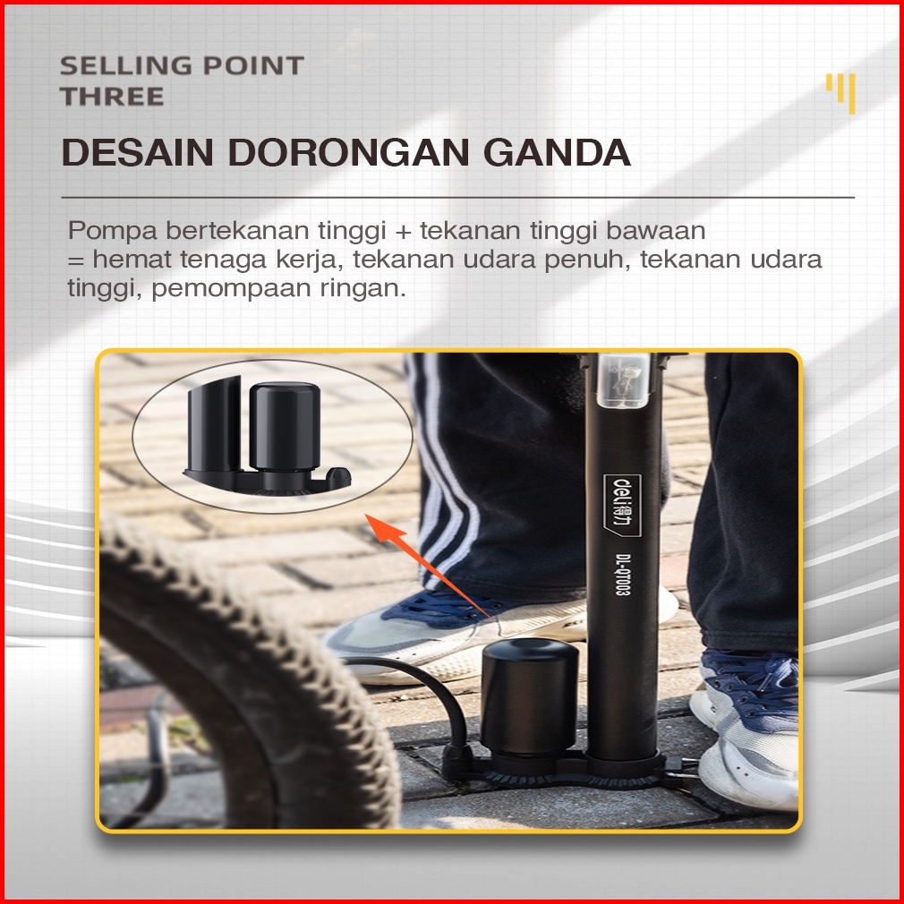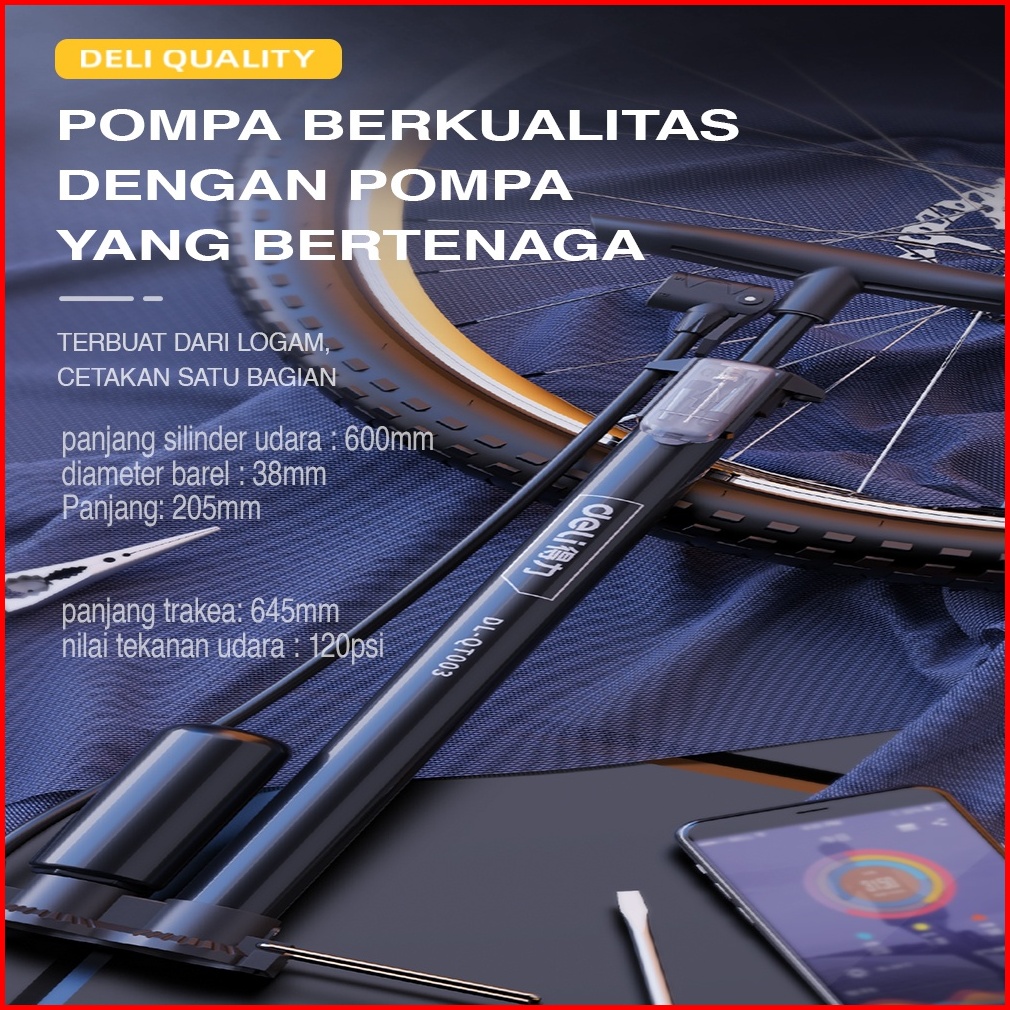 Deli Air Pump Pompa Angin Ban Sepeda Manual 38 X 500 Dl-qt002 Dl-qt003 Alat Perkakas