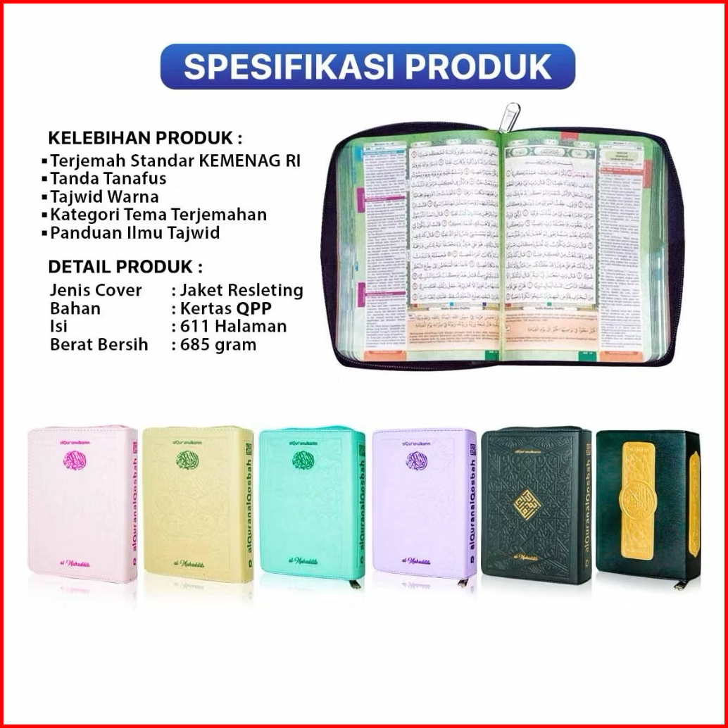 Alquran A6 Kecil Resleting Al Muhaddist Terjemahan Tajwid Warna Ukuran 11x15cm