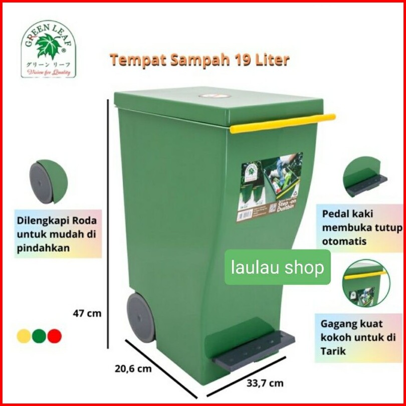 Tempat Sampah Injak Roda 19 Liter Green Leaf 2128 Kotak Sampah Plastik Kotak Sampah Dust Bin