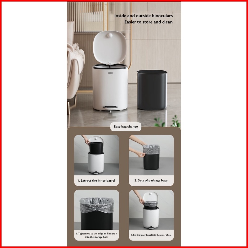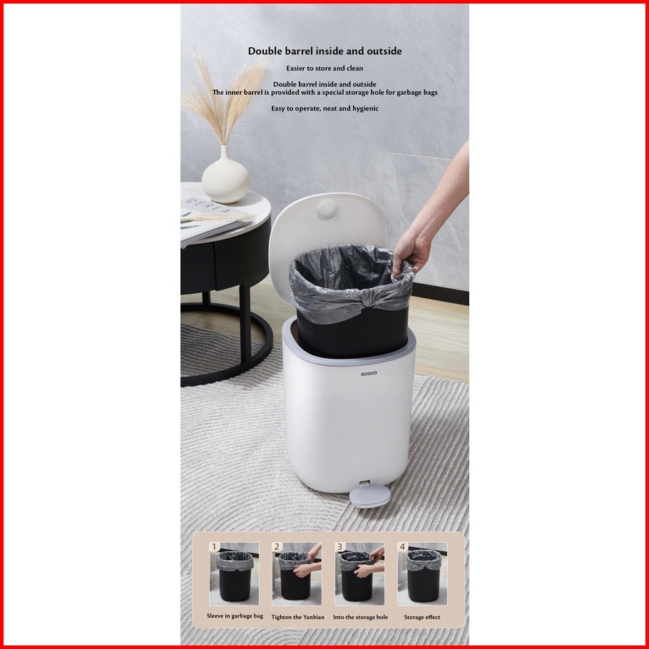 Ecoco Pedal Trash Can - Tempat Sampah Kotak Keranjang Tong Bin Sampah Injak Otomatis Estetik Minimalis Homeware