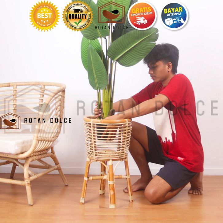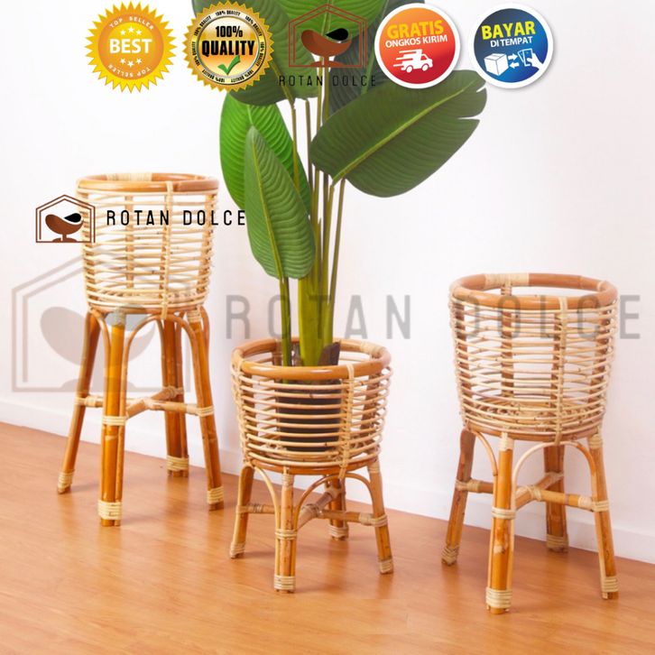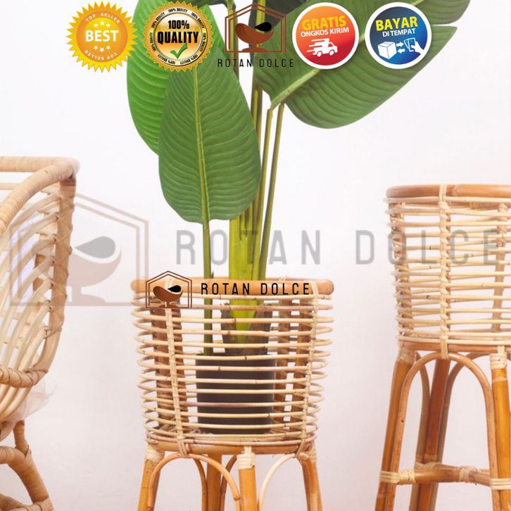 Standing Pot Rotan Finishing Melamin Mengkilap