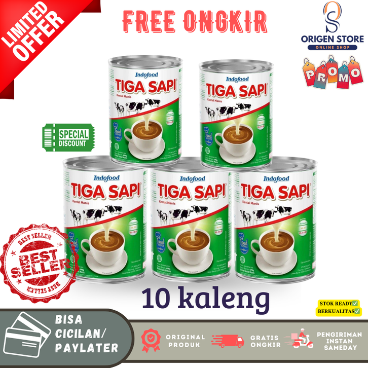 Tiga Sapi Susu Kental Manis 490 Gram x 10 Kaleng