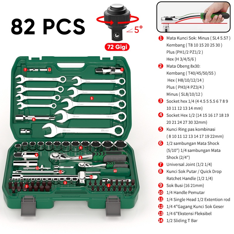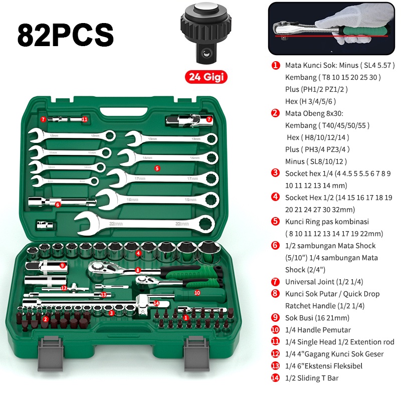 APR JAPAN AP66 121pc Kunci pas set socket shock sok L bintang obeng 121pc rachet wrench live