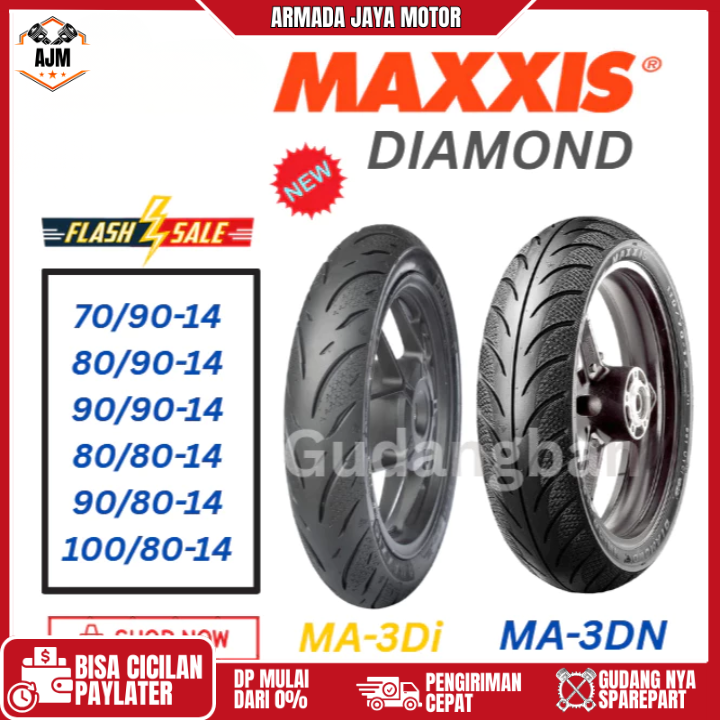 1 SET BAN TUBLES RING 14 MAXXIS MA-3DN DIAMOND MOTOR MATIC SEPASANG MAXIS TUBELESS MA3DN MA 3DN 80 90 100 BEAT MIO VARIO
