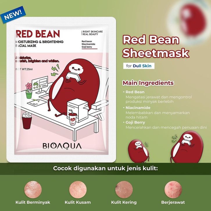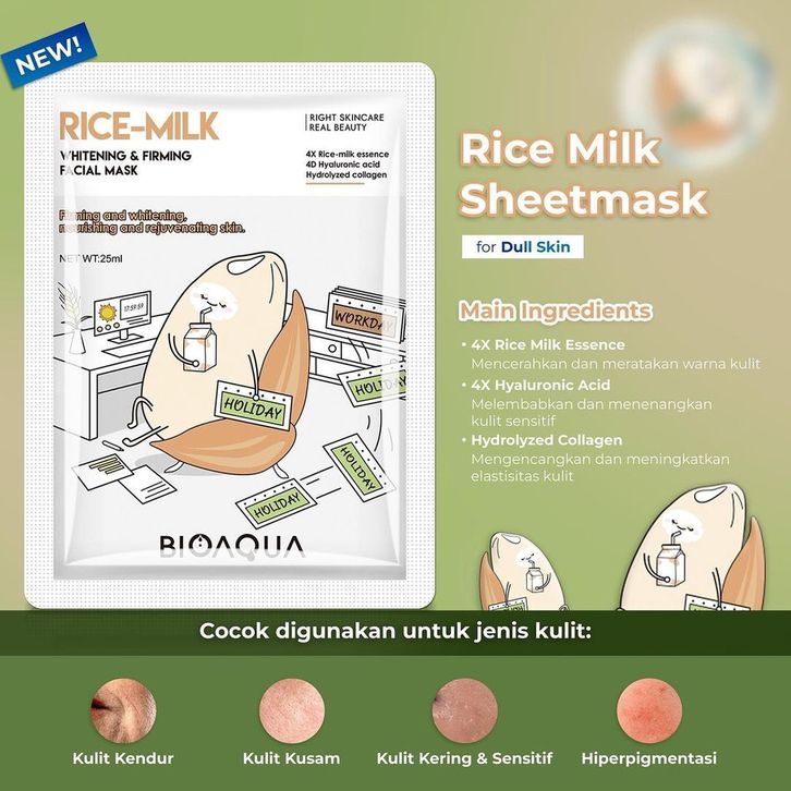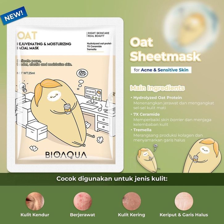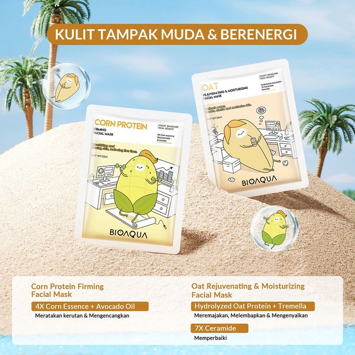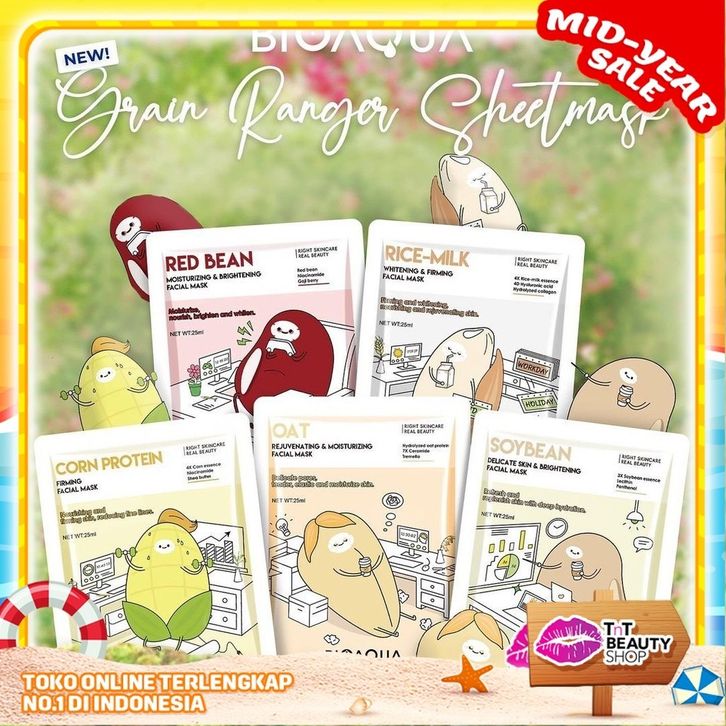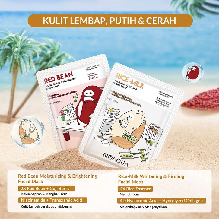 BIOAQUA Masker Wajah Cereal Sheet Mask Facial Mask 25ml - Masker Muka Glowing Rice-Milk/Oat/Red RATU CANTIKA