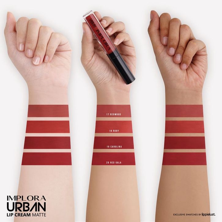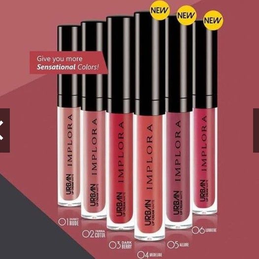 IMP 01. DUSKY NUDE, IMP 02. TERRA COTTA, IMP 03. DARK BERRY, IMP 04. MEDELINE, IMP 05. ALLURE, IMP 06. LUMIERE, IMP 07.TRUFFLE MOUVE, IMP 08 PINK LATTE, IMP 09 BUTTERSCOTCH, IMP 10 GINGERBREAD, IMP 11 RED BEAN, IMP 12 BROWN SUGAR, IMP 13 HAZELNUDE, IMP 14 BABY ROSE, IMP 15 SALMON PINK, IMP 16 DUSTY PEACH, IMP 17 REDWOOD, IMP 18 RUBY, IMP 19 CAROLINA, IMP 20 RED GALA, VELVET Extrovert, VELVET Fearless, VELVET Honest, VELVET Naive, VELVET Serenity, VELVET Attractive