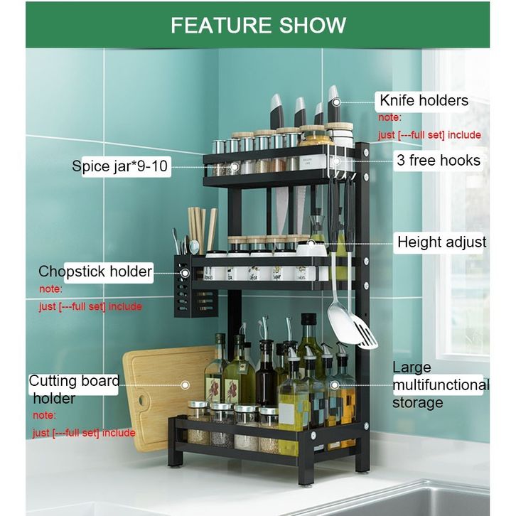 Best Seller Rak Bumbu Dapur/Piring Gelas Stainless Steel Steel 2/3 Tier Rak Botol Rempah-rempah Minimalis