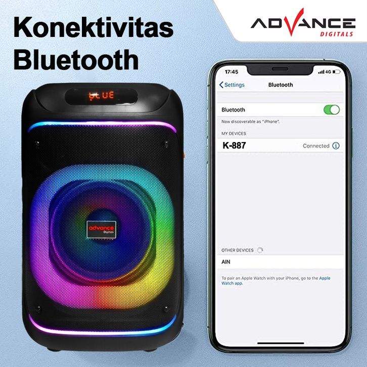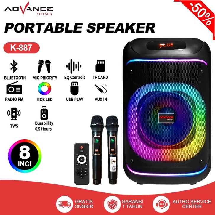 Speaker Bluetooth Advance K887 8inch 12inch Aktif Free 2 mic Wireless Karaoke Portable Full Bass Salon GMC JBL Polytron
