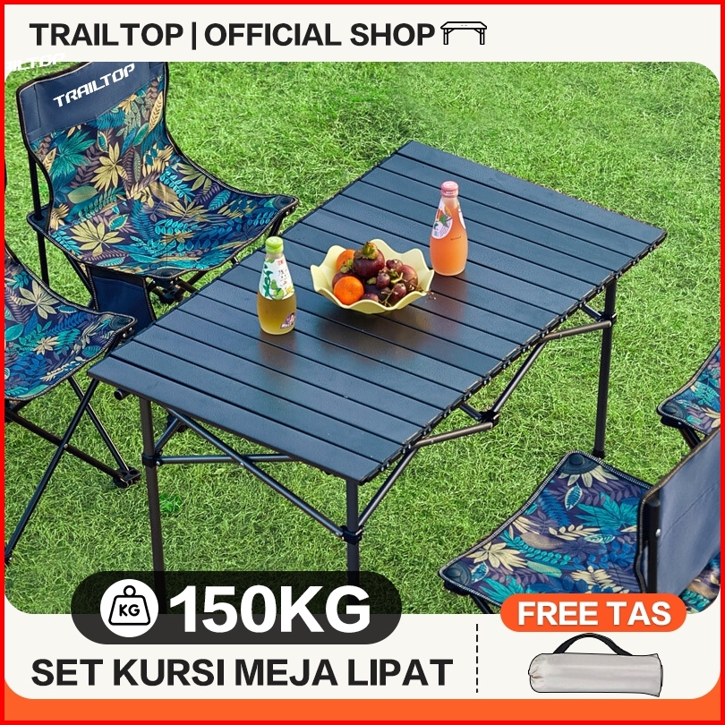 Trailtop Paket Kursi Meja Lipat Outdoor Portable Kursi Lipat 1 Set