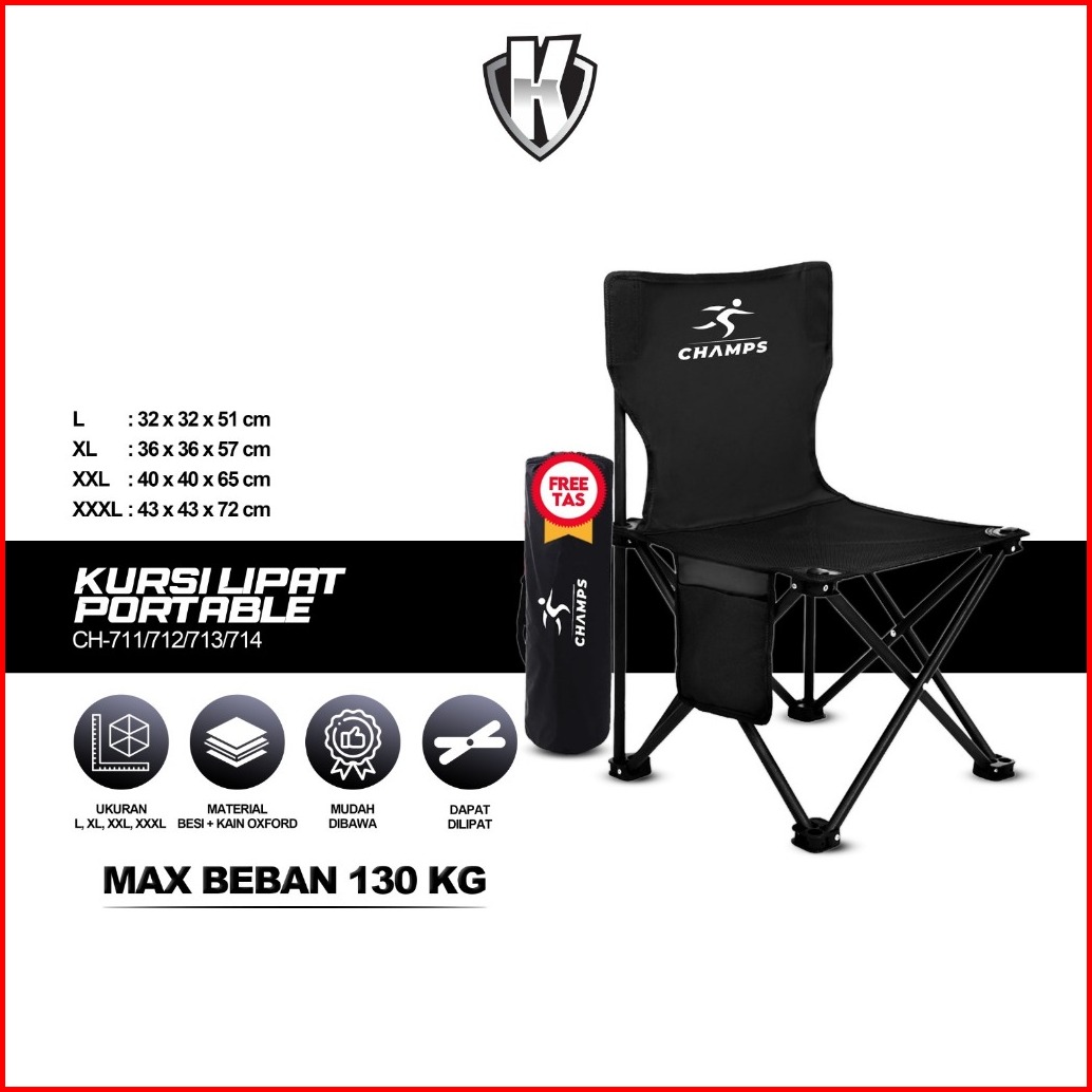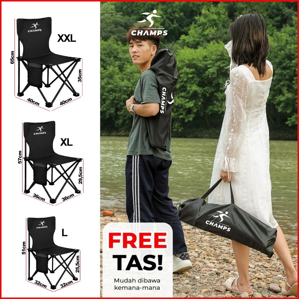 Champs Kursi Lipat Outdoor Portable Bangku Camping Folding Chair Gunung Kemah Ringan Kursi Camping