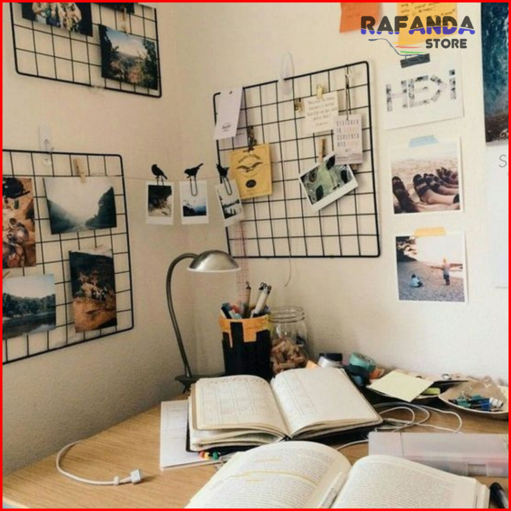 Grid Wall Tebal 70x70cm Ram Besi Dinding Persegi Hijang Poto Polaroid Gantungan Aksesoris Room Decor