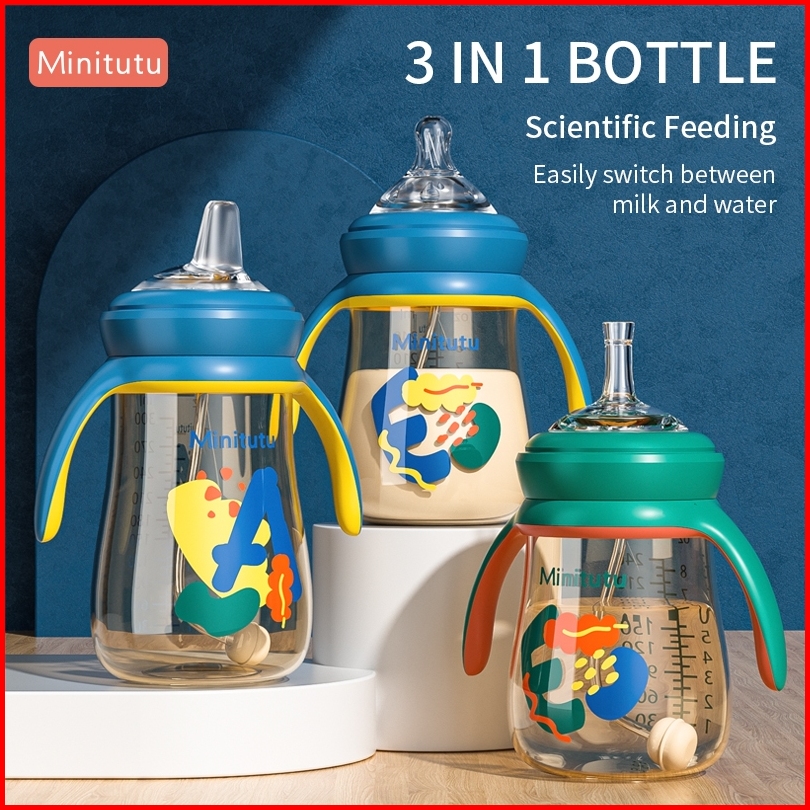 Minitutu Botol Minum Bayi 3in 1 Dot Dan Sedotan 240 300 Ml Training Cup Karakter Bpa Free