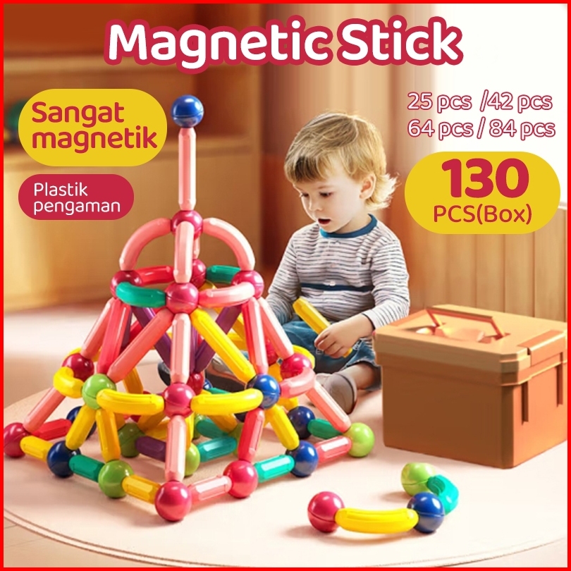 25 42 64 84 130pcs Diy Mainan Magnet Stick Magnetic Building Blocks Mainan Edukasi Anak Batang Magnet