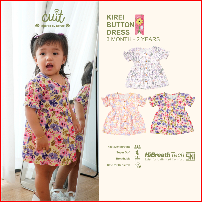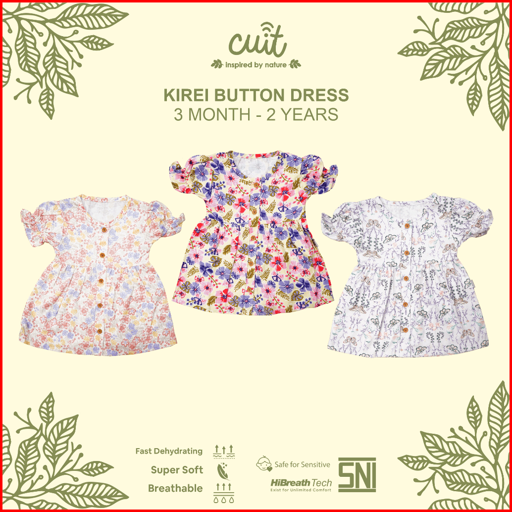 Cuit Button Dress Anak Bayi Kancing Tangan Pendek Kirei