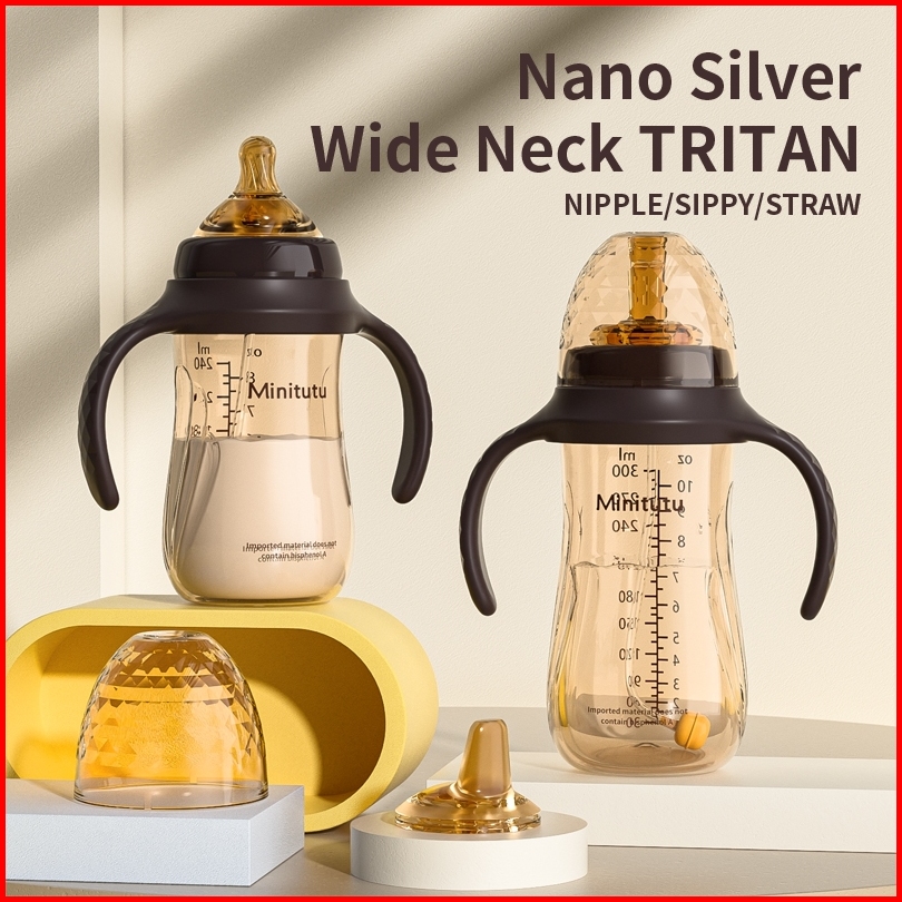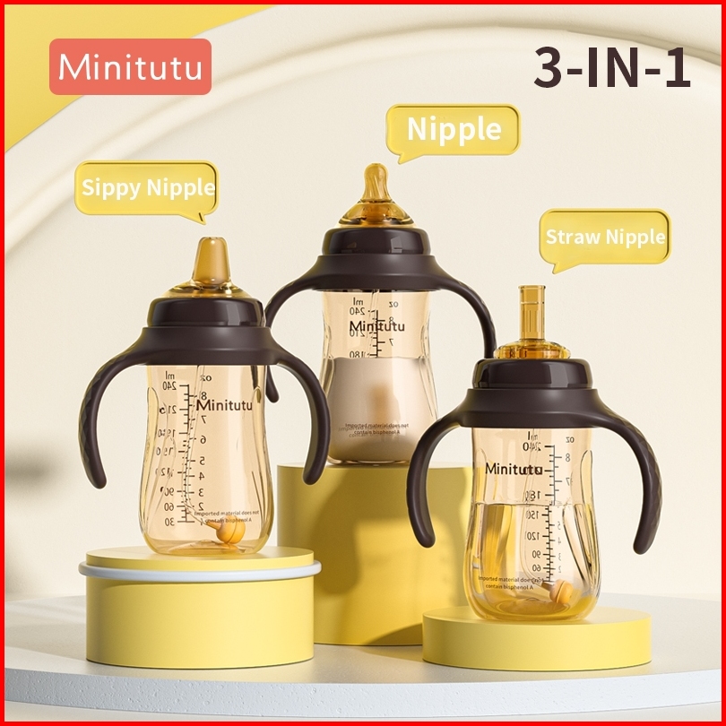 Botol Susu Bayi Minitutu 3 In 1 Dengan Leher Botol Nano Cokelat Tidak Mengandung Bisfenol A Melamin Kapasitas 240 Ml 300