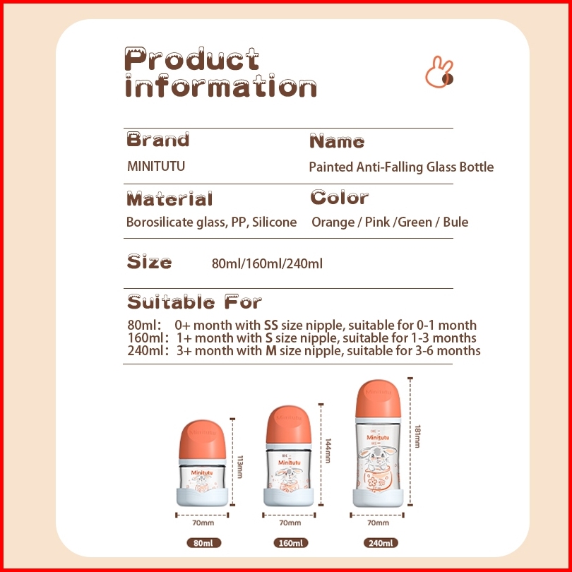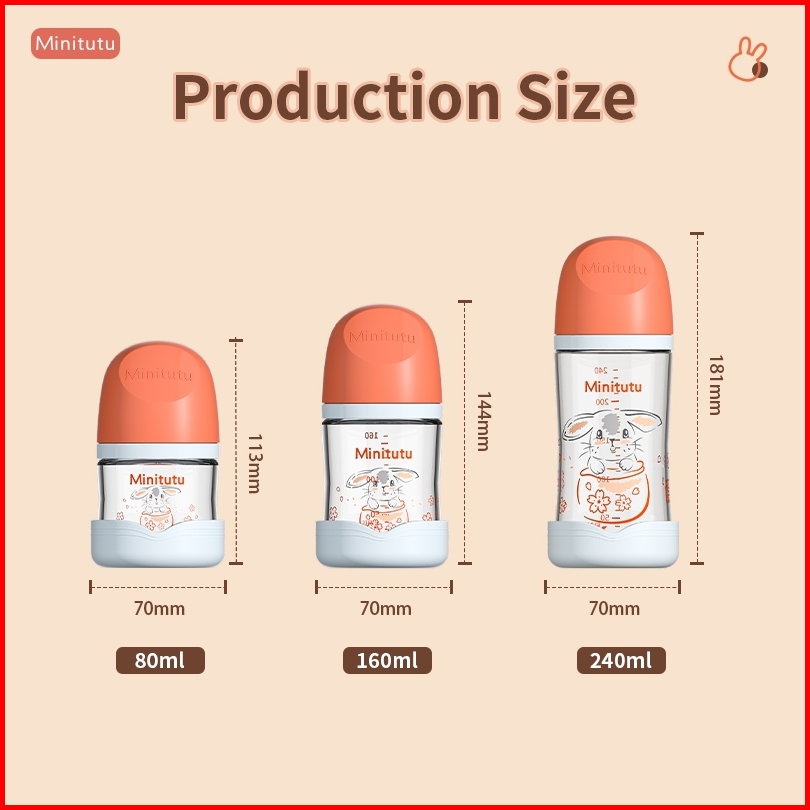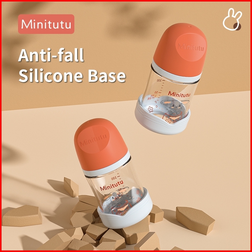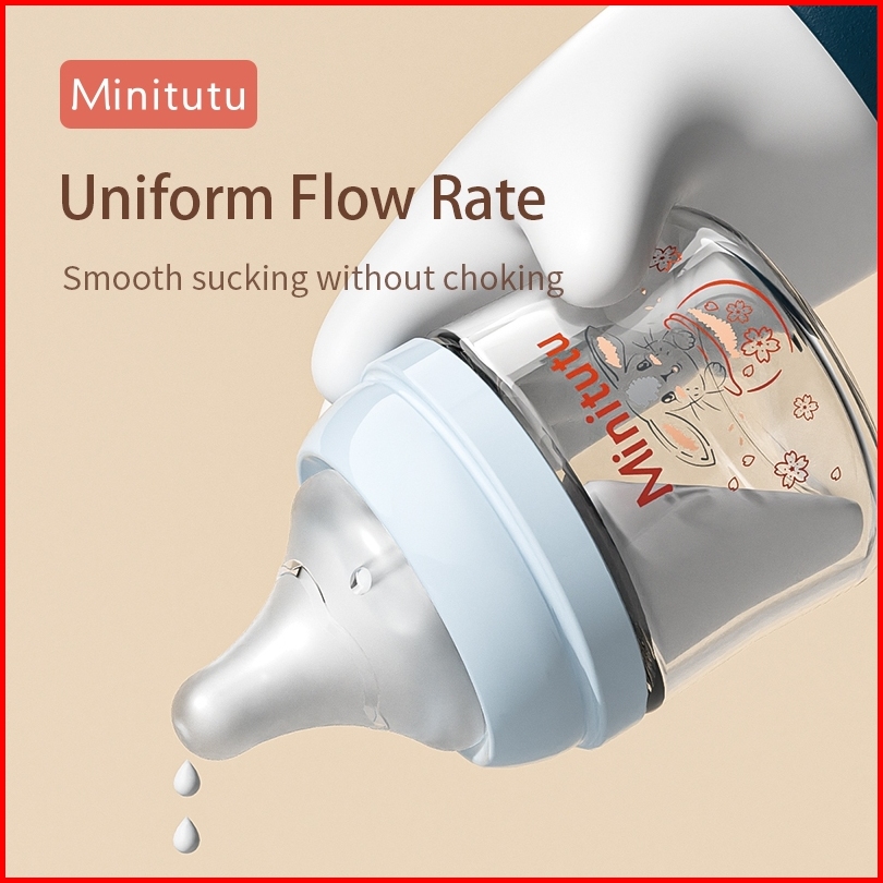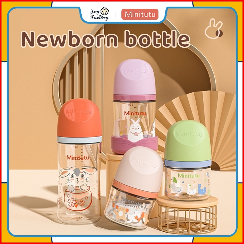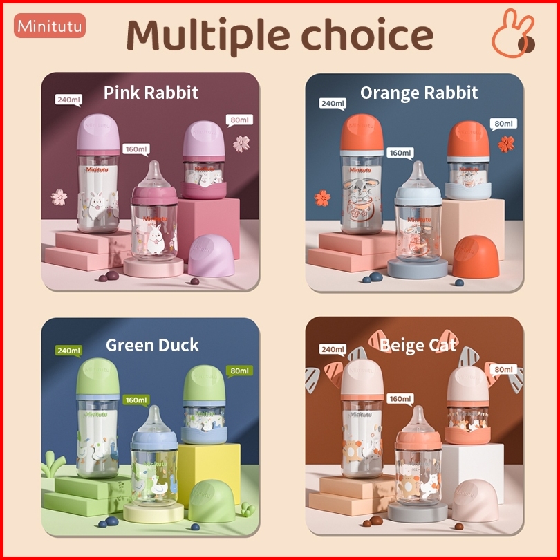 Minitutu Botol Susu Kaca Berwarna Dengan Mulut Lebar Untuk Bayi Baru Lahir Anti Kolik Tanpa Tabung 80ml 160ml 240ml