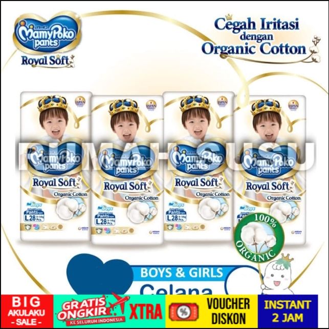 MamyPoko Royal Soft Pants M42 / L34 / XL30 / XXL24 Boy Girls - Rumah Susu TERLARIS