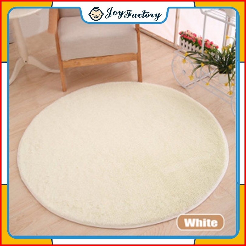 Karpet Bulat Berbulu Pendek Putih Dengan Diameter 1.2 Meter Untuk Ruang Tamu Kamar Tidur Atau Sisi Tempat Tidur