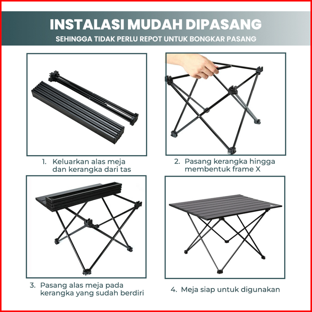Brookwood Meja Lipat Camping Portable Meja Lipat Outdoor Indoor Alumunium Folding Table Praktis Serbaguna