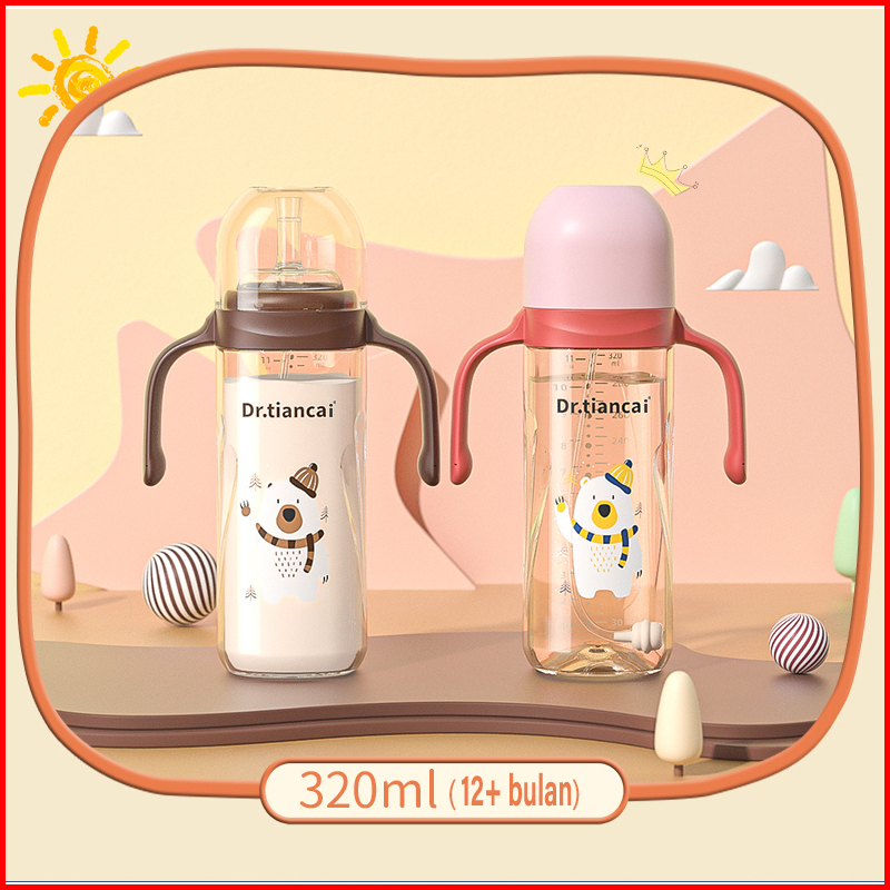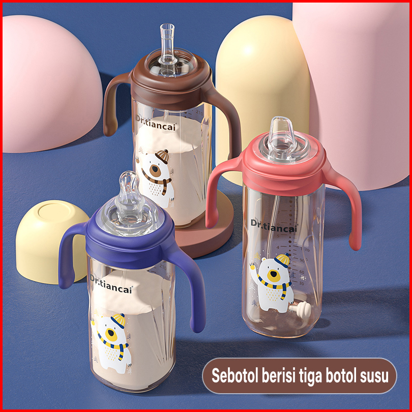 1 Cangkir 3 Dot Botol Susu Bayi Gelas Anak Anti Tumpah Botol Kartun 320ml Bayi Susu Bottle Sedotan