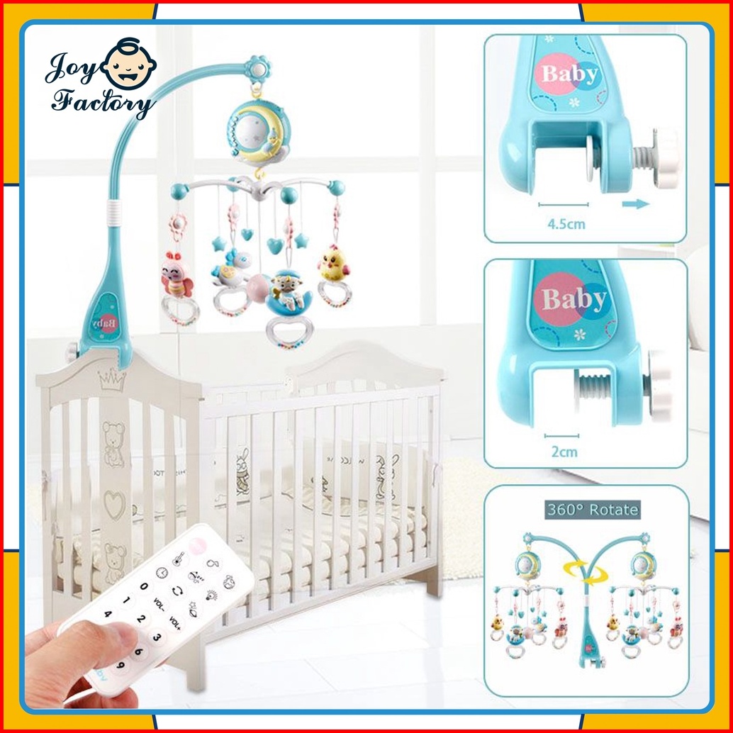 4 Warnababy Crib Bell Toys Mobile 0-12 Bulan Mainan Rattle Music Remote Control Memutar Bel Tempat Tidur