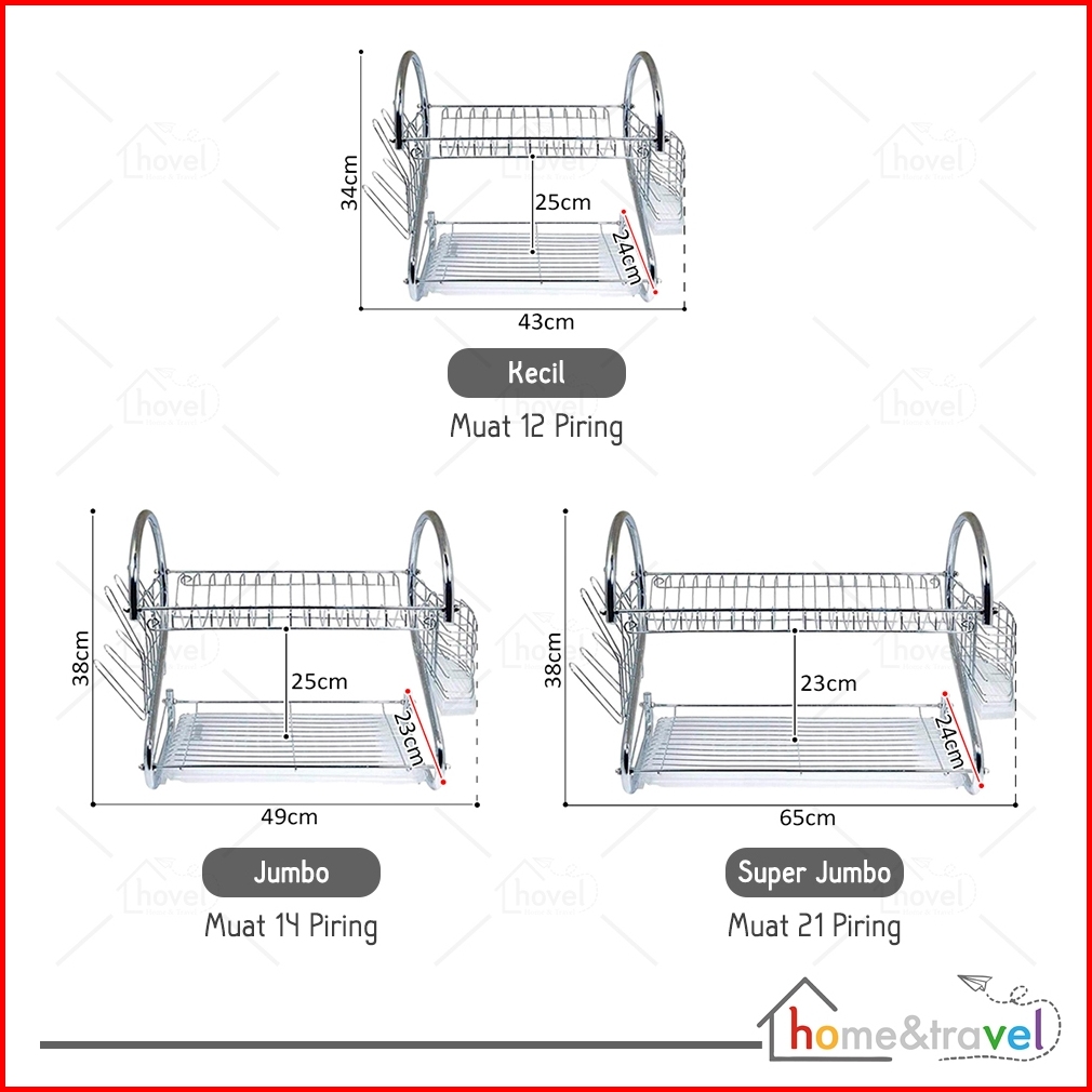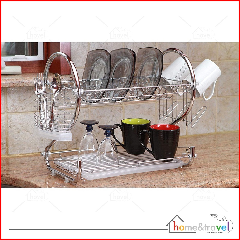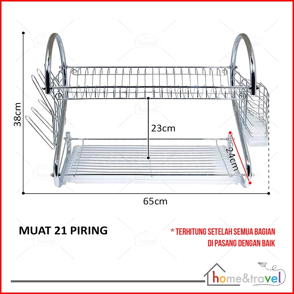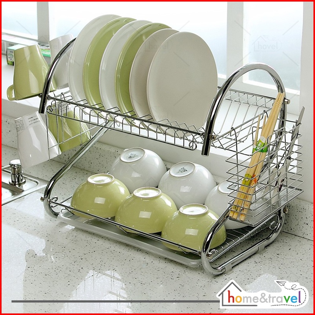 Hovelshop Rak Piring Stainless 2 Susun Murah - Rak Peralatan Dapur 2 Tingkat