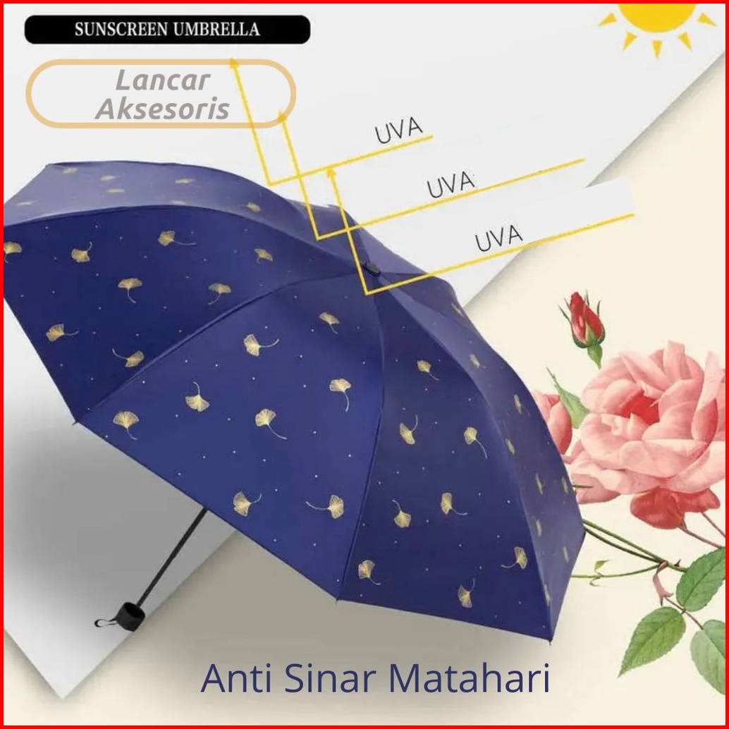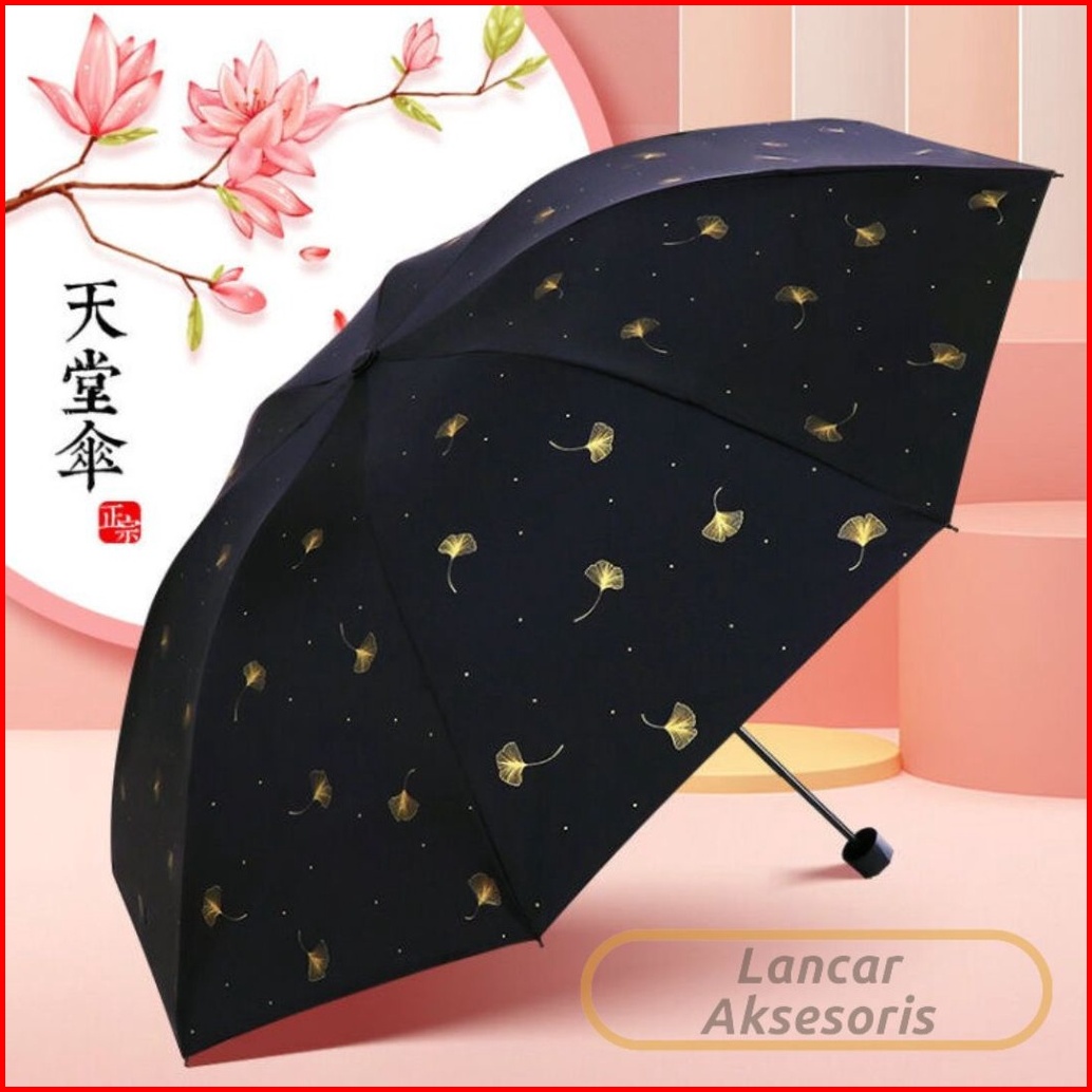 Payung Lipat Aesthetic Anti Uv Motif Daun Ginkgo Payung Cantik Paradise Original Premium Free Sarung Anti Hujan Sinar Ma
