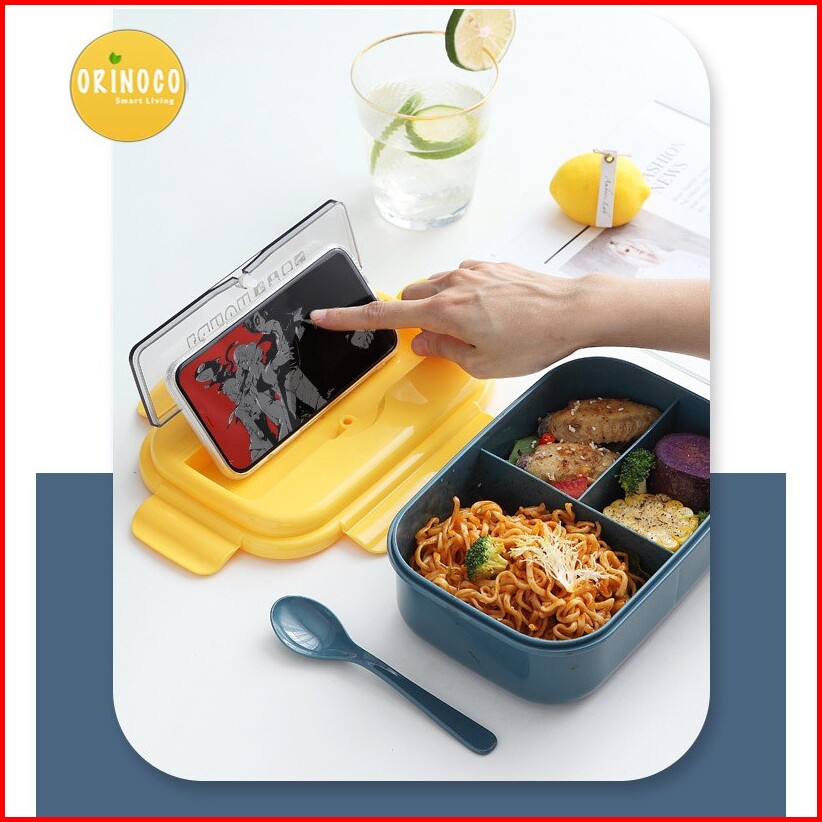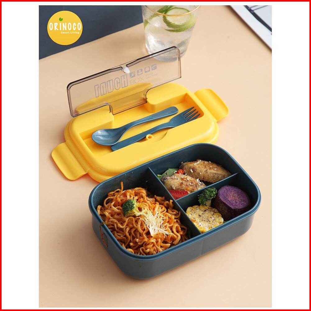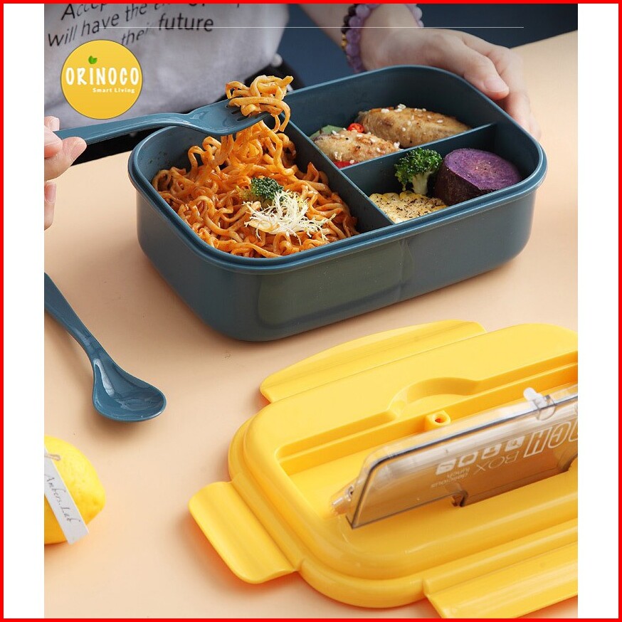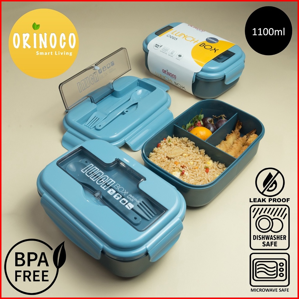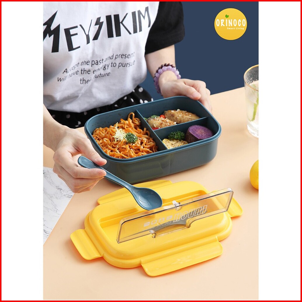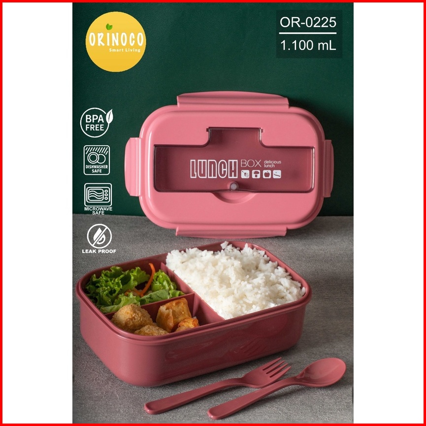 Orinoco Lunchbox 0225 Microwavable Anti Tumpah 3 Sekat Free Sendok Garpu -bpa Free - Hijau Kuning
