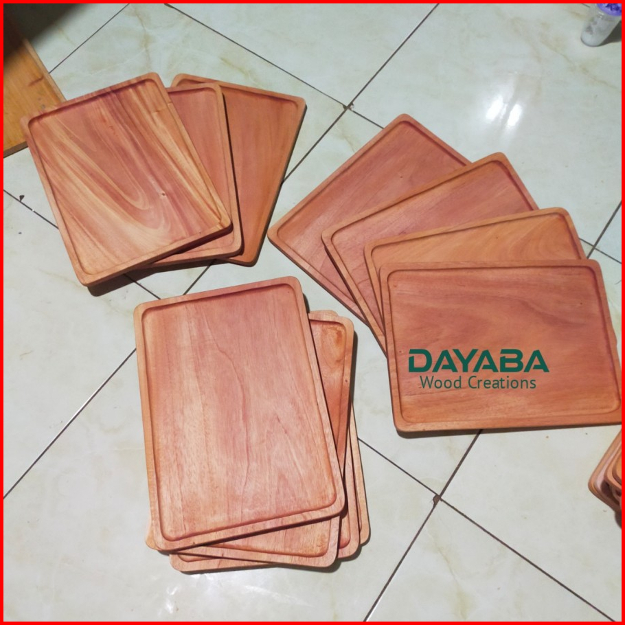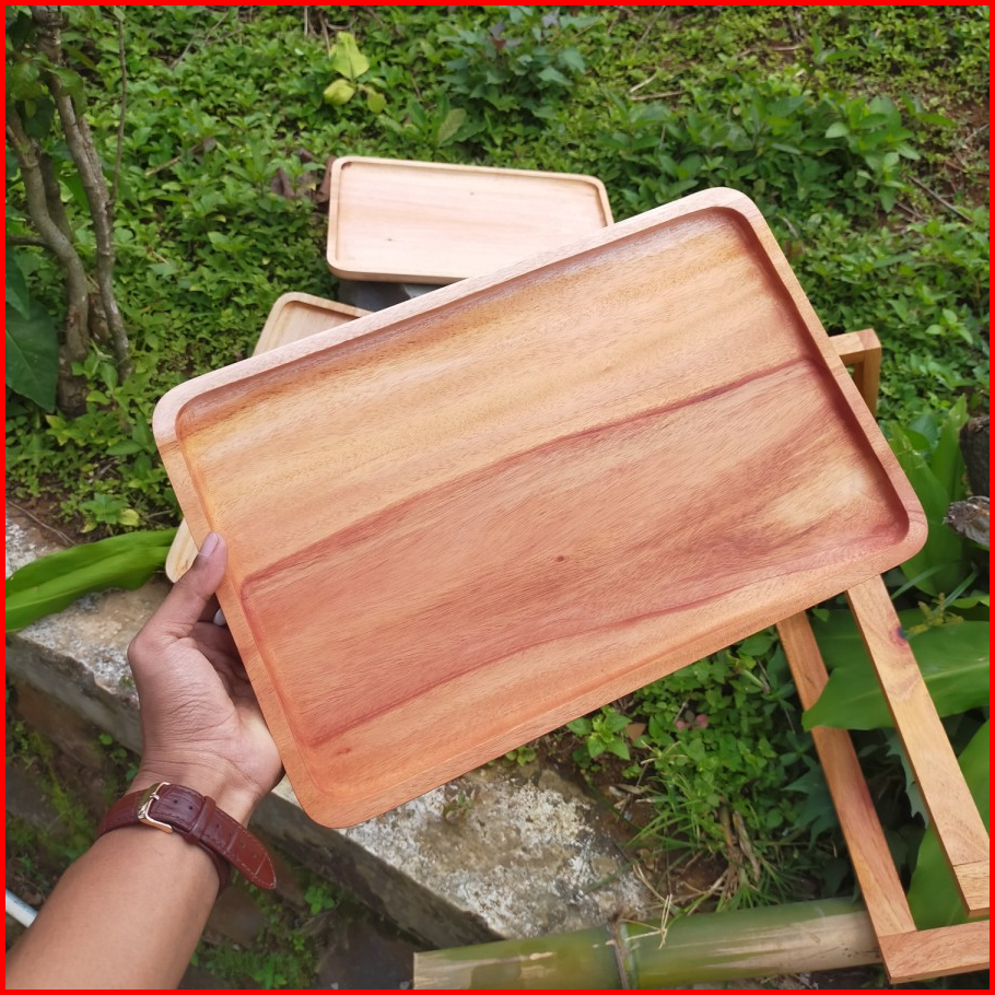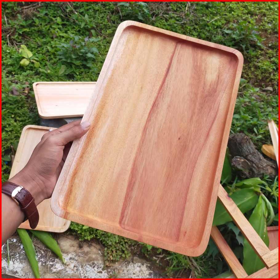 Nampan Baki Kayu Utuh Solid 35x25 Cm Solid Wooden Tray Ukuran Besar Natural Food Grade