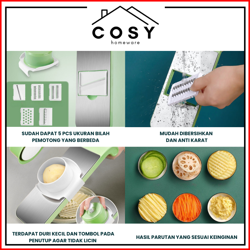Cosy Parutan Sayur Dan Buah 8 In 1 Vegetable Cutter Premium Stainless Steel Multifungsi Anti Karat