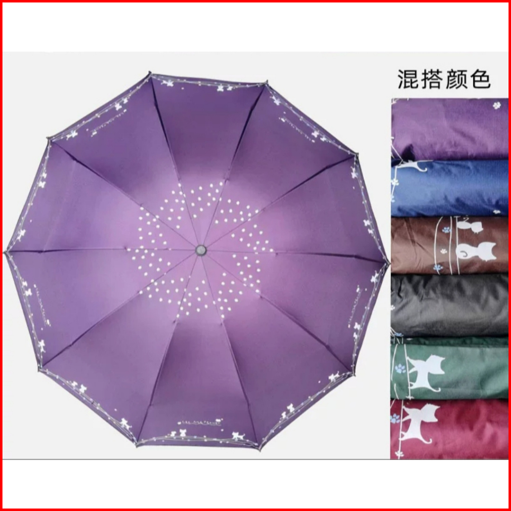 Payung Lipat 10 Jari Anti Uv Semi Jumbo Motif Kucing
