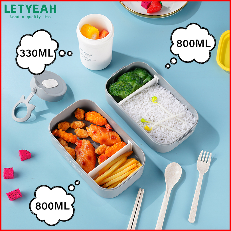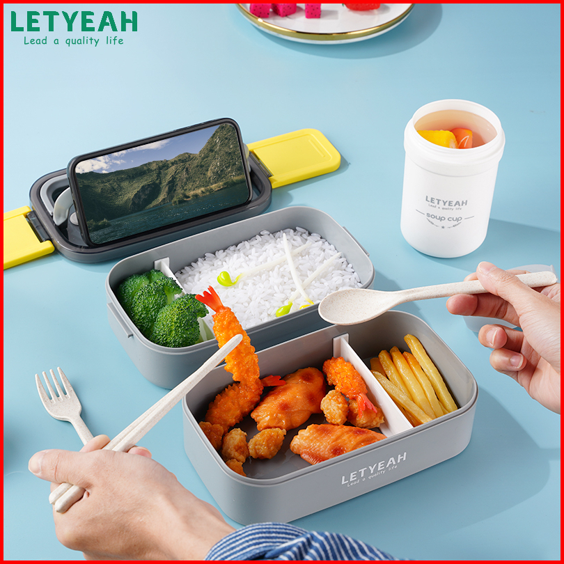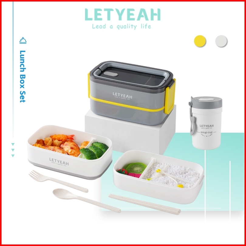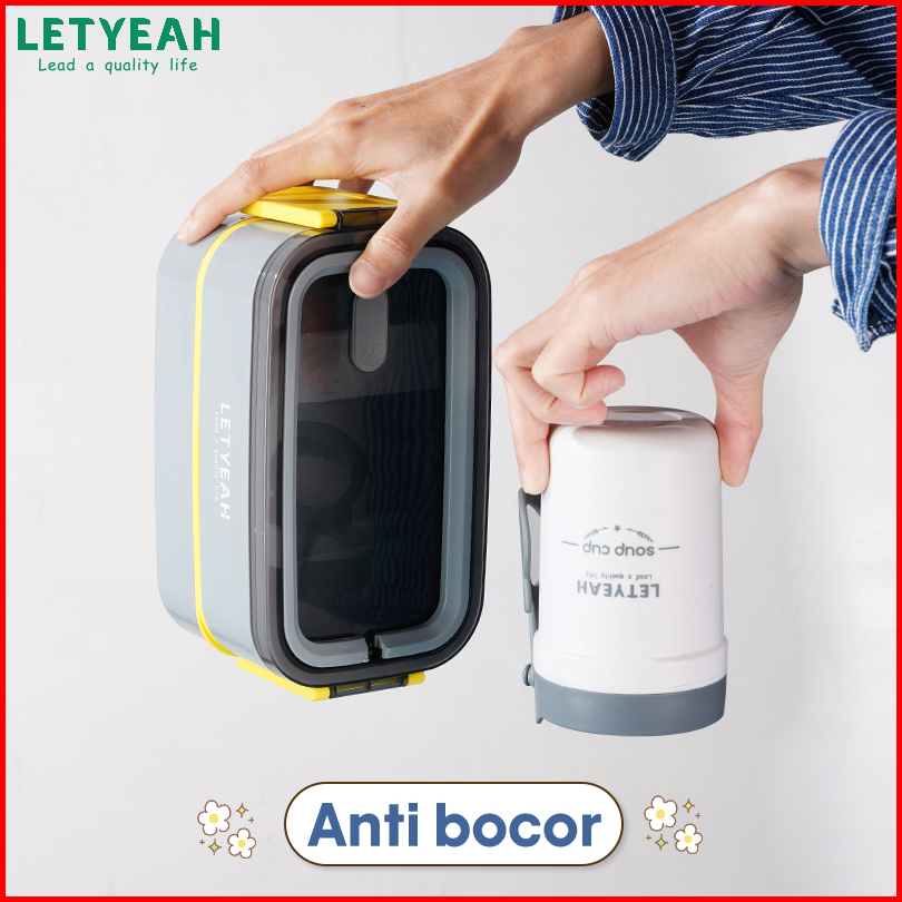 Letyeah Kotak Makan Set 1600ml Double Layer Lunch Box Set Dan Mangkuk Sup Anti Tumpah 330ml
