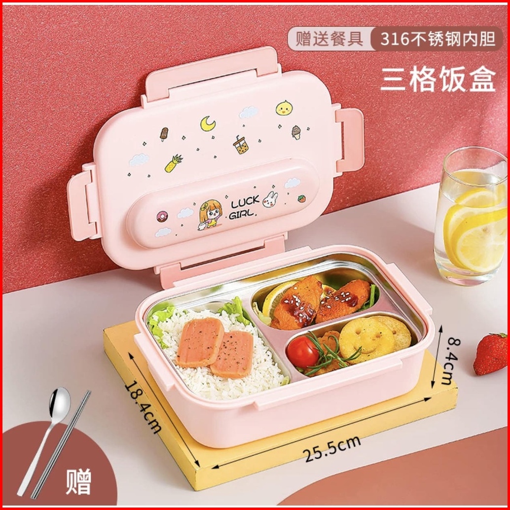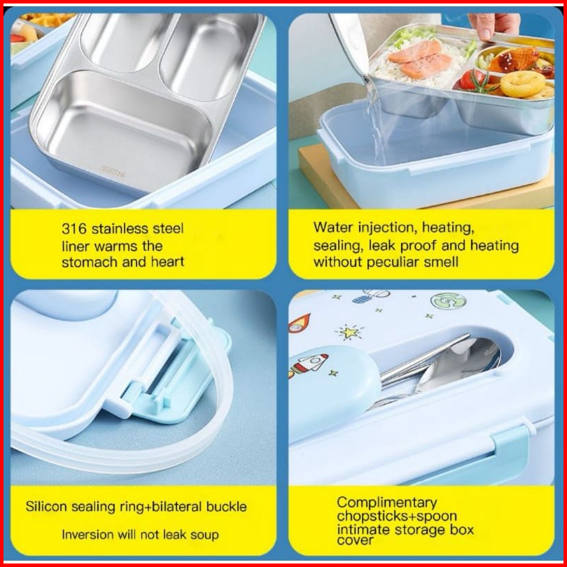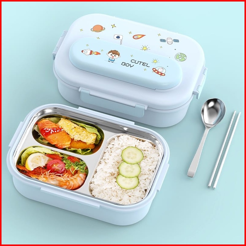 Kotak Makan Anak Set 3 Sekat Stainless Steel Kids Lunch Box Set Free Stiker