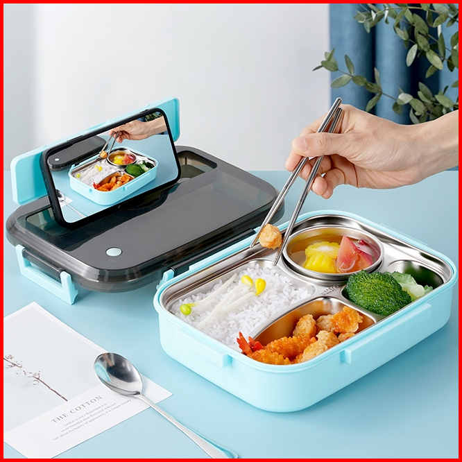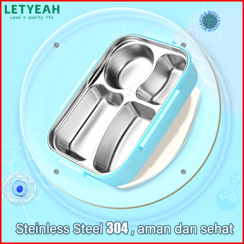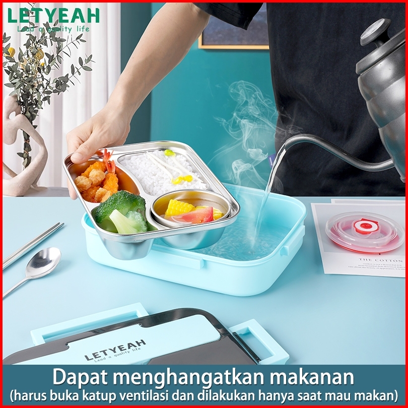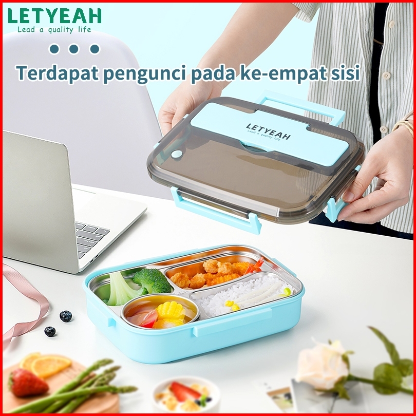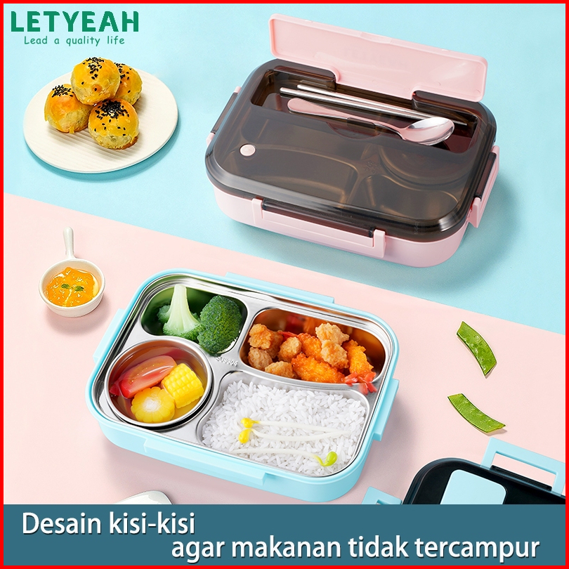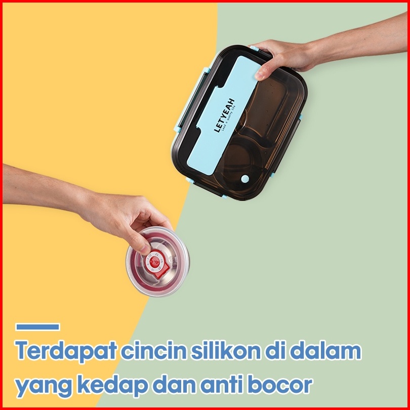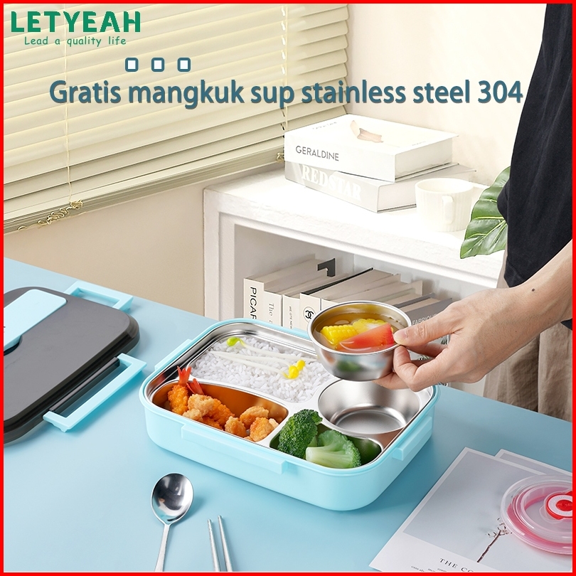 Letyeah Anantagt Kotak Makan Set Stainless Anti Tumpah Sup Mangkuk Dan Lunch Box Sekat 4 Tahan Panas
