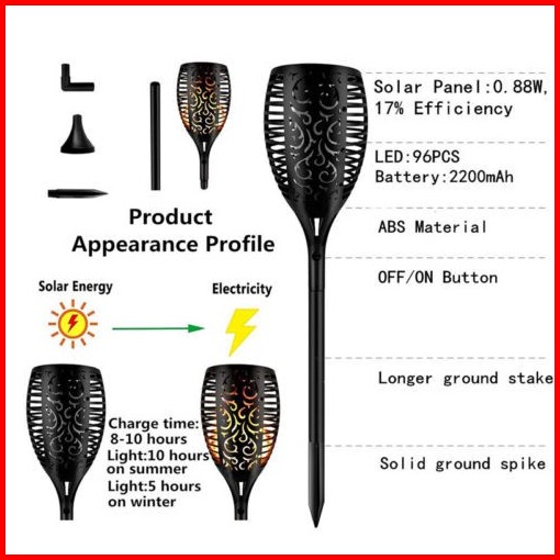 96led Lampu Taman Solar Lampu Model Obor Tenaga Surya Flame Light Kecil